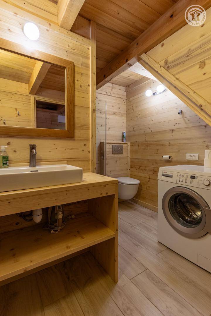 Dieses ländliche Chalet liegt in einem Weiler am Hang, umgeben von Wiesen und Wäldern. Es besteht aus zwei angrenzenden Ferienhäusern und einem Ferienstudio für die Eigentümer im Erdgeschoss. Das Chalet verfügt über eine große, gemeinsam mit dem angrenzenden Ferienhaus genutzte Terrasse und einen überdachten Privatparkplatz. Gemeinsames Grundstück. Geschäfte befinden sich in Arêches (800 m) und Beaufort (6 km).