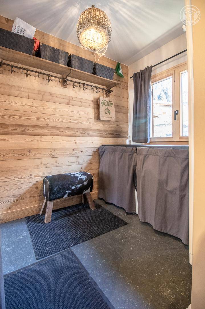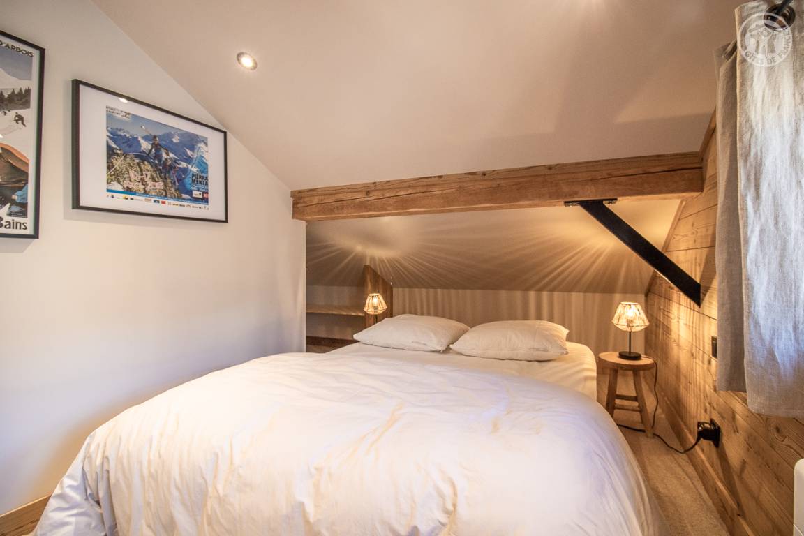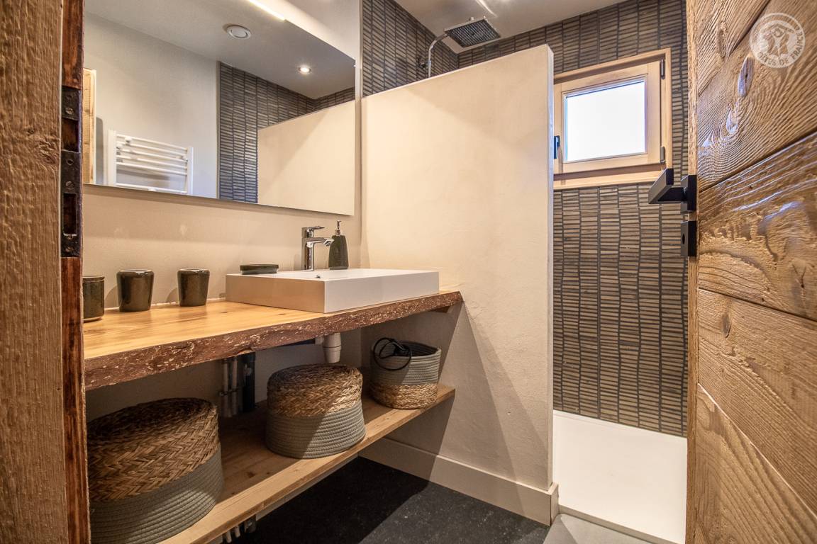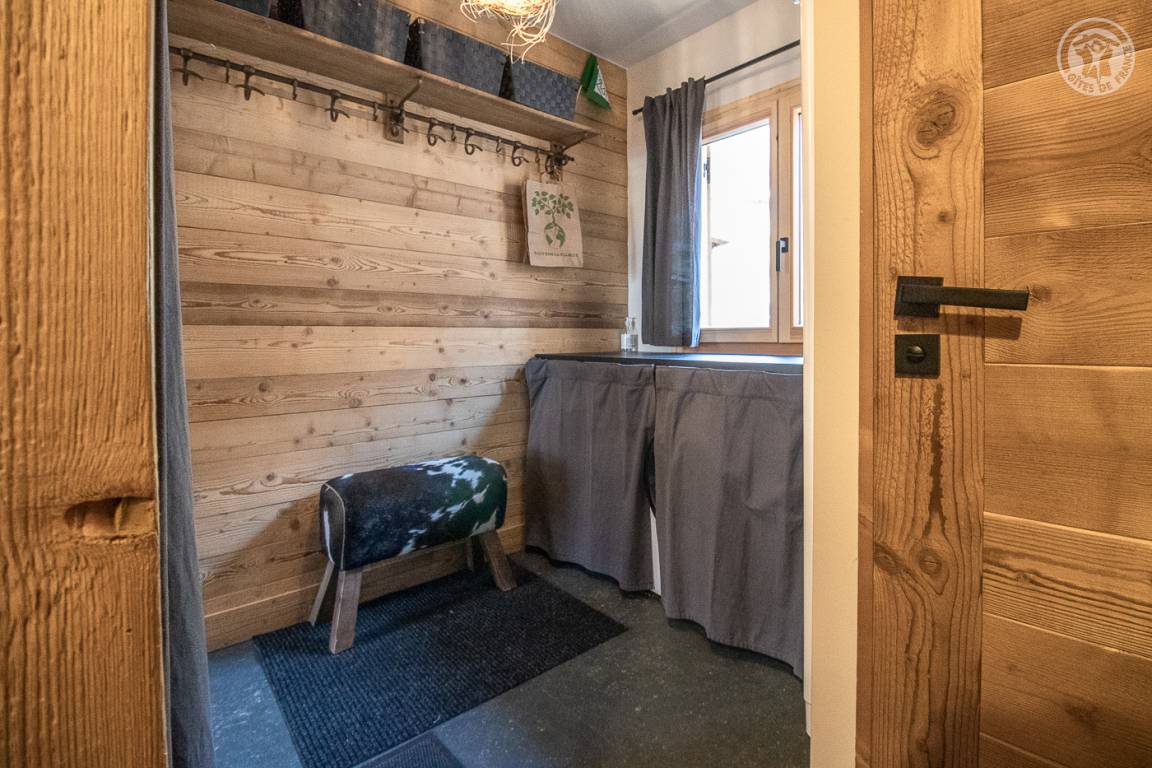 Unabhängiges Chalet. Im Erdgeschoss: Wohnküche mit Zugang zu einer Balkonterrasse, separates WC, Waschküche, 2 Schlafzimmer (1 Doppelbett 140x190 cm / 1 Doppelbett 160x190 cm), Badezimmer (Dusche italienisch). Im 1. Stock: 2 Schlafzimmer (1 Doppelbett 140x190 cm / 1 Doppelbett 140x190 cm), Badezimmer (Dusche) mit WC. Privater Parkplatz.