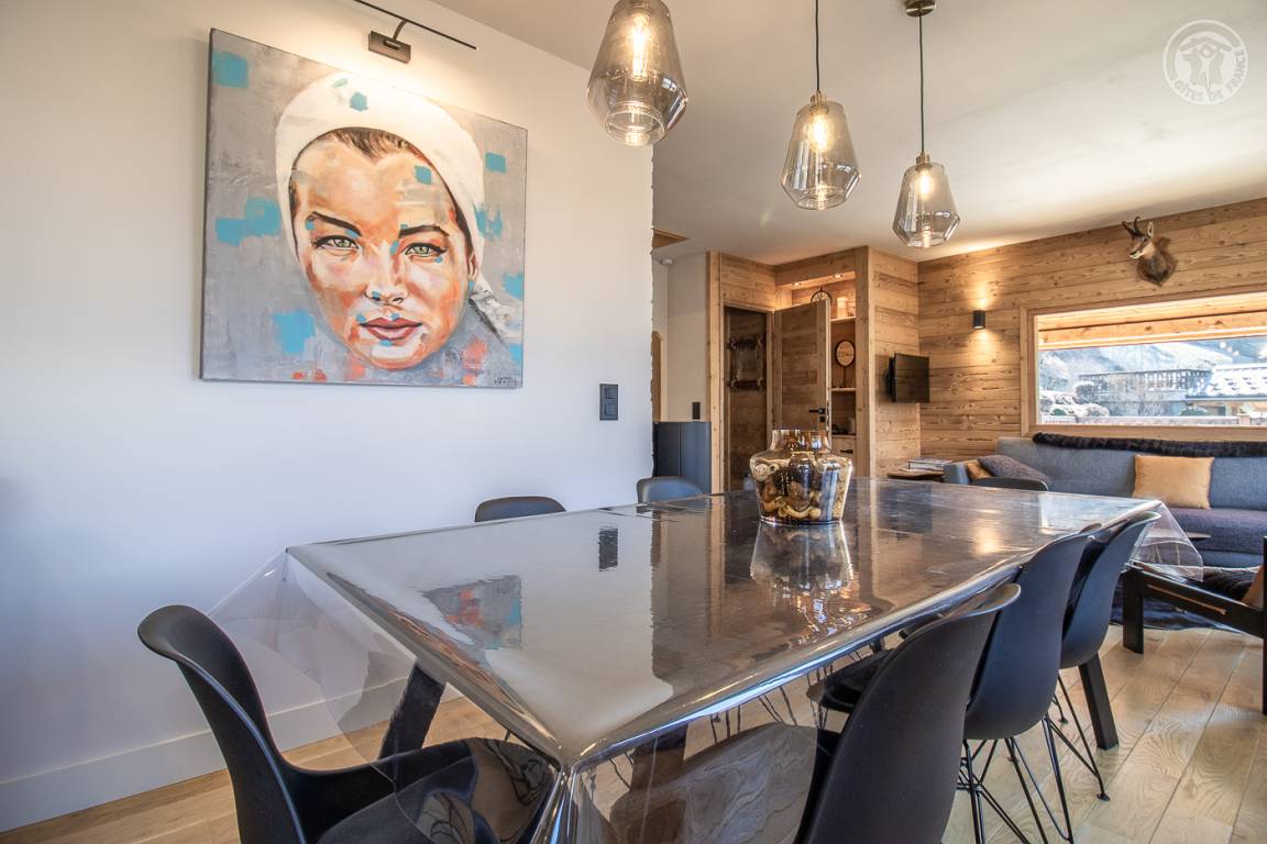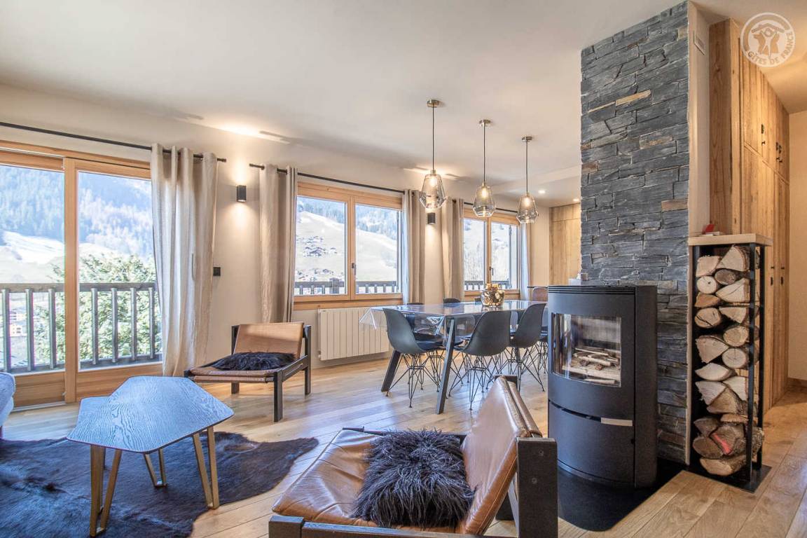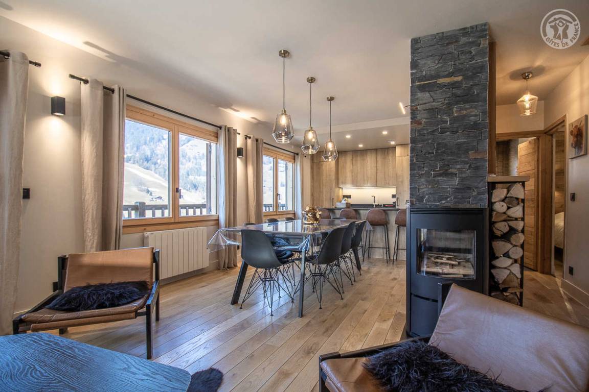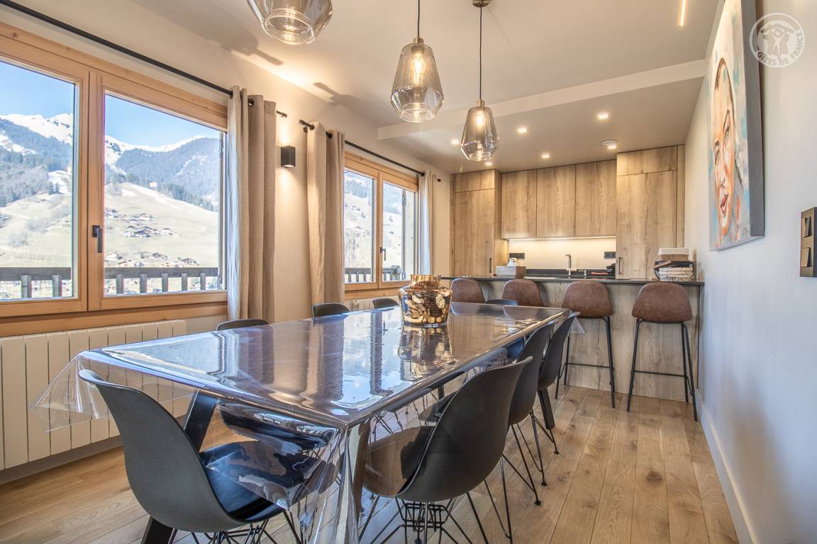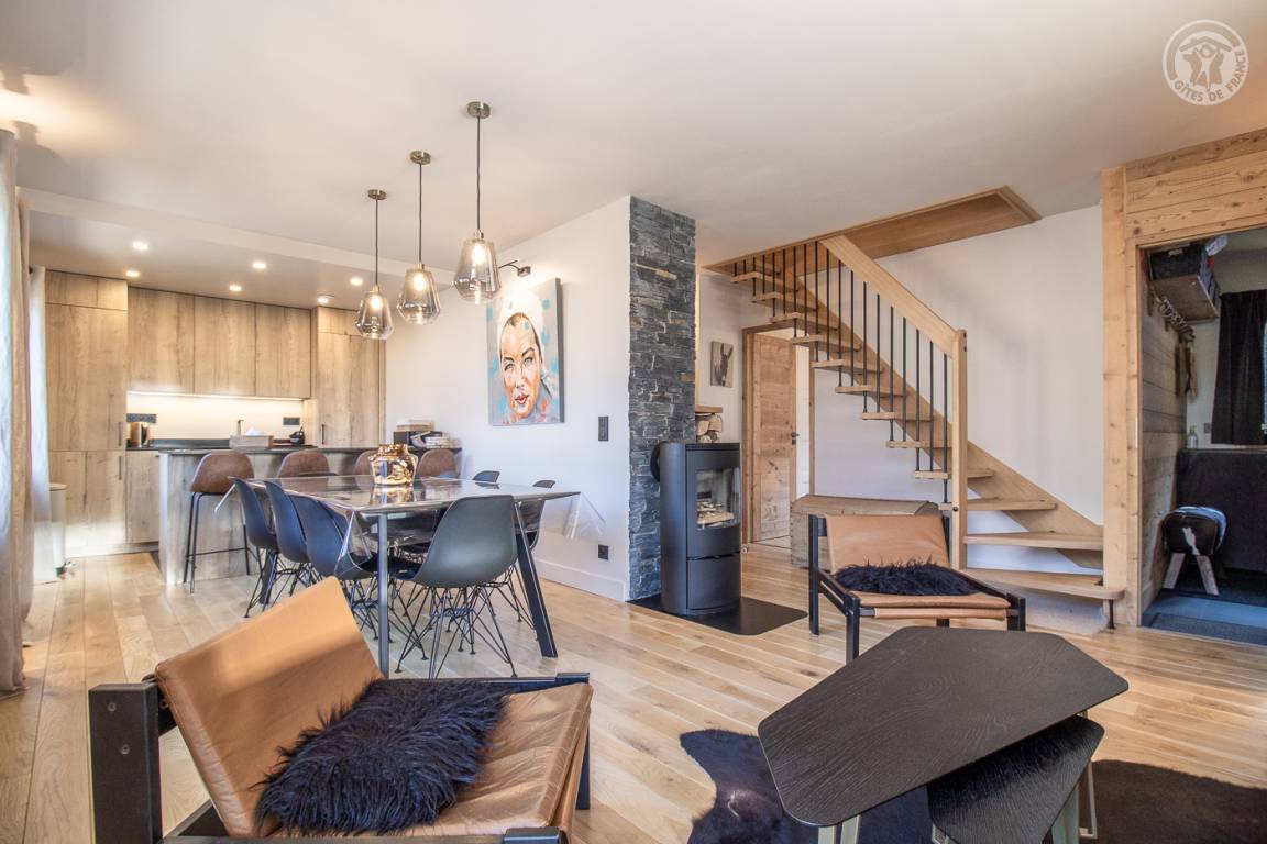 Sehr komfortables Ferienhaus 350 Meter vom Zentrum von Arêches entfernt. Warmer zeitgenössischer Bergcharakter. Offene Küche mit hochwertiger Ausstattung. Angenehme überdachte Terrasse. Schöne freie Sicht auf das Massiv. Nähe zu Geschäften und Dienstleistungen.