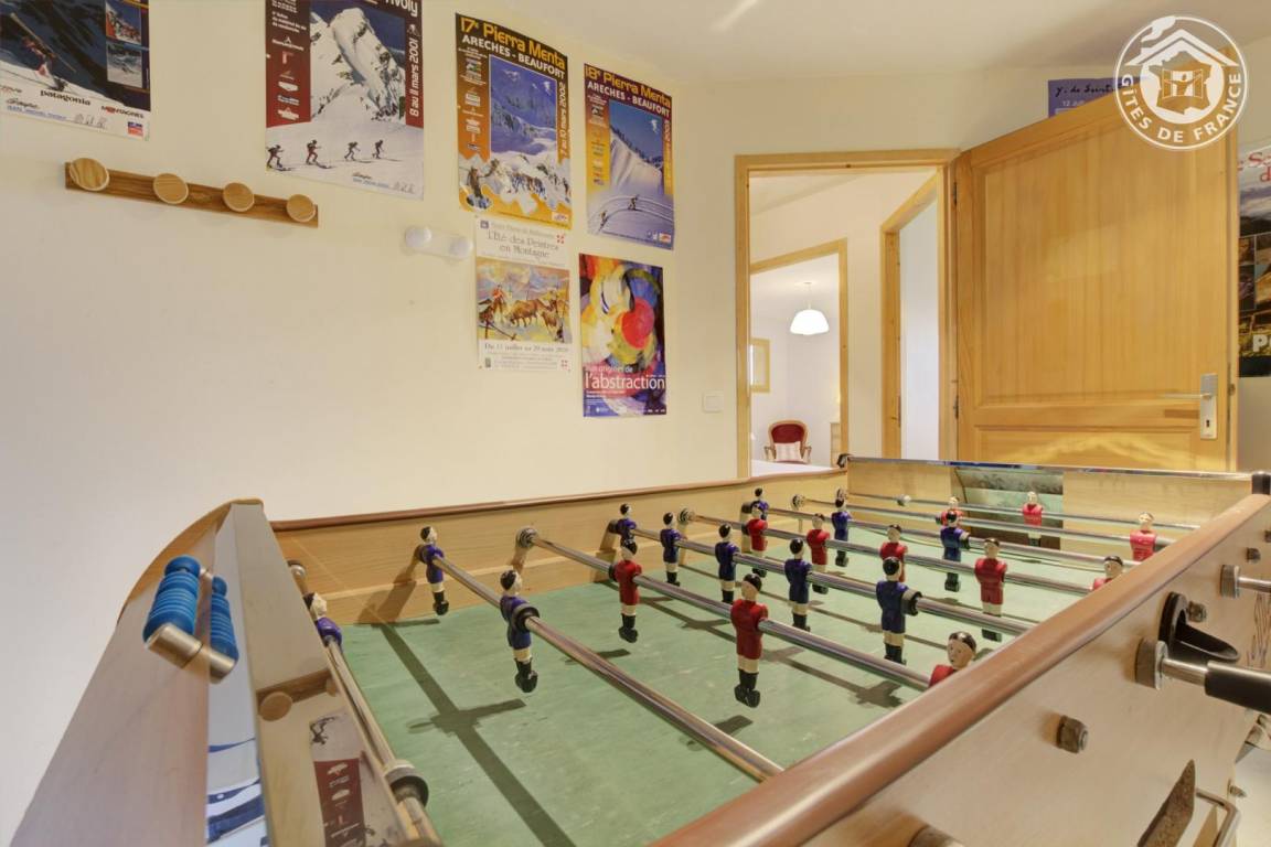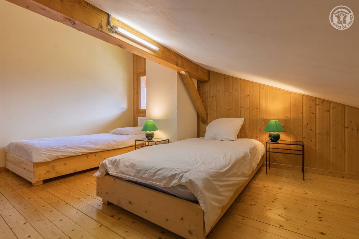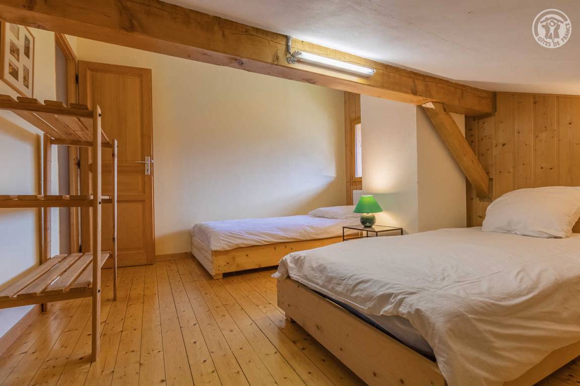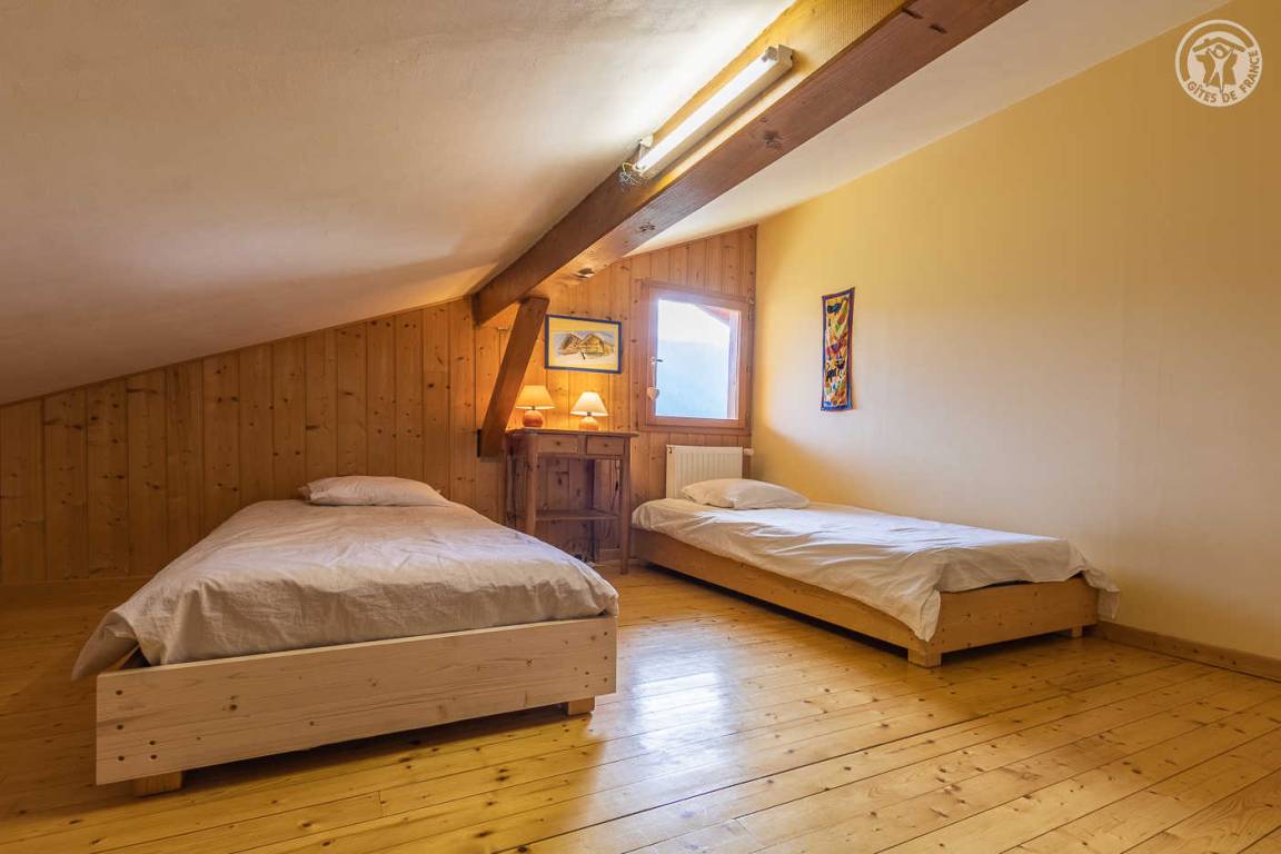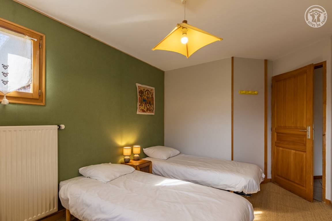 Individuelles Chalet, erreichbar über einen kleinen Weg. 1-Stellplatz-Garage am Ende dieses kleinen Weges (40 m von der Hütte entfernt, dann zu Fuß hinauf). Im Erdgeschoss: 2 Schlafzimmer (1 Doppelbett und 2 Einzelausziehbetten), Badezimmer (Dusche), WC, Spielzimmer mit Tischfußball. Im 1. Stock: Wohnzimmer, Wohnzimmer und Küche, 1 Schlafzimmer (1 Doppelbett), Badezimmer (Badewanne), WC. Im 2. Stock: 2 Schlafzimmer (3 Einzelbetten und 3 Einzelbetten), Badezimmer (Dusche + WC). Gesamtnutzfläche: 176 m² inklusive Dachgeschossflächen.