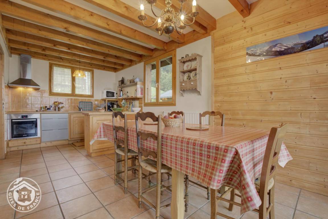 „Très beau chalet avec une vue magnifique sur la vallée et les montagnes enneigées (au petit déjeuner le matin c'est trop beau). Chalet très fonctionnel, parfait pour un groupe de 8 personnes avec ses 3 salles de bains et 3 wc qui respectent l'intimité de chacun. Bref un super séjour malgré une météo peu favorable mais pour avoir de beaux pâturages l'eau est indispensable. Cela ne nous a pas empêché de randonner avec nos belles capes de pluie et voir la pluie nous qui en avons si peu chez nous, ce fut presque agréable. Cordialement Laurence“