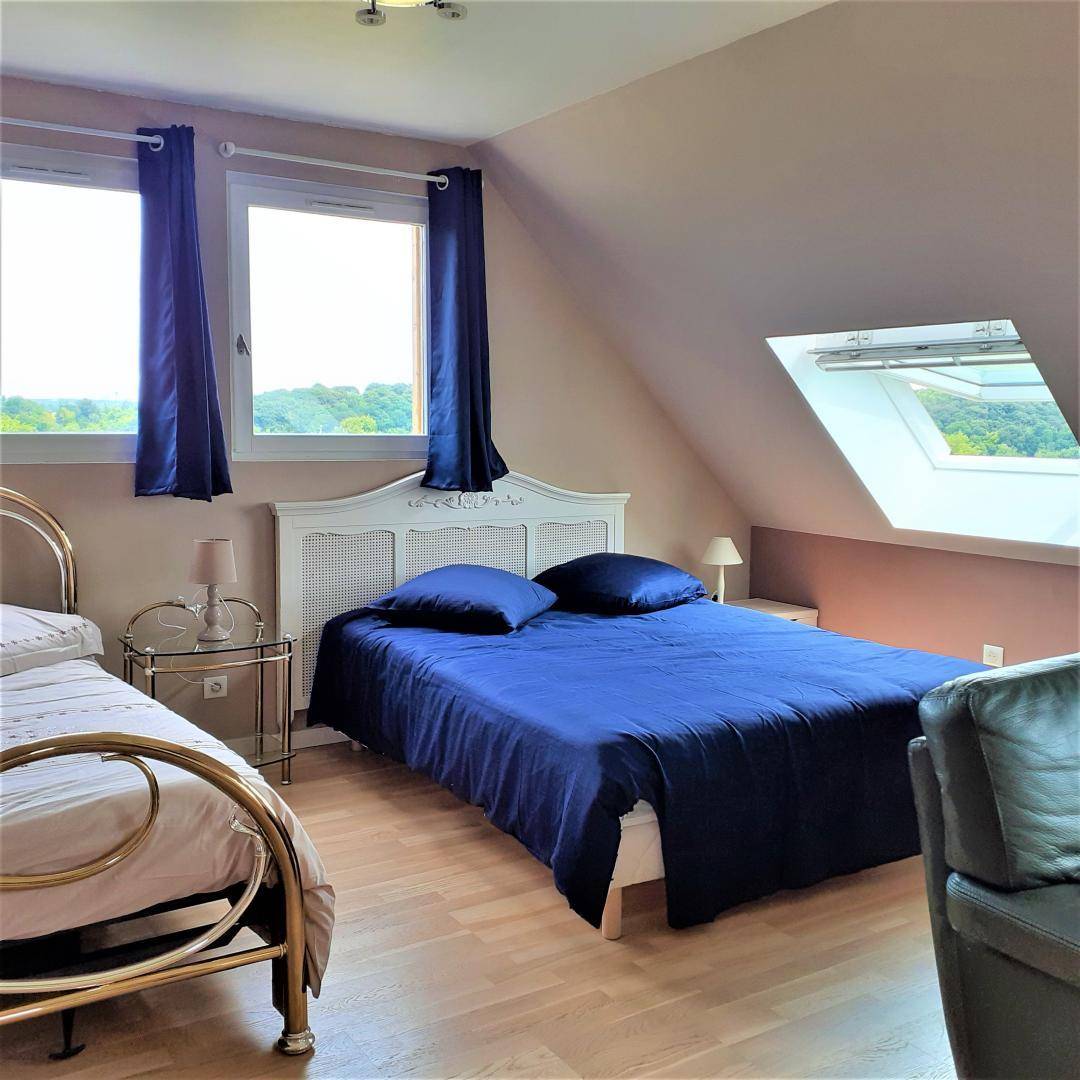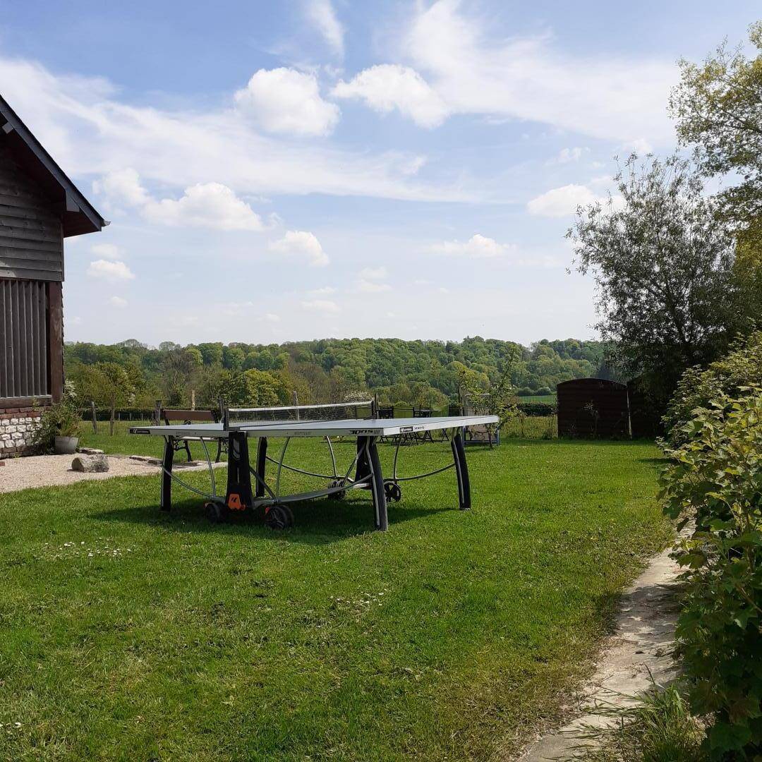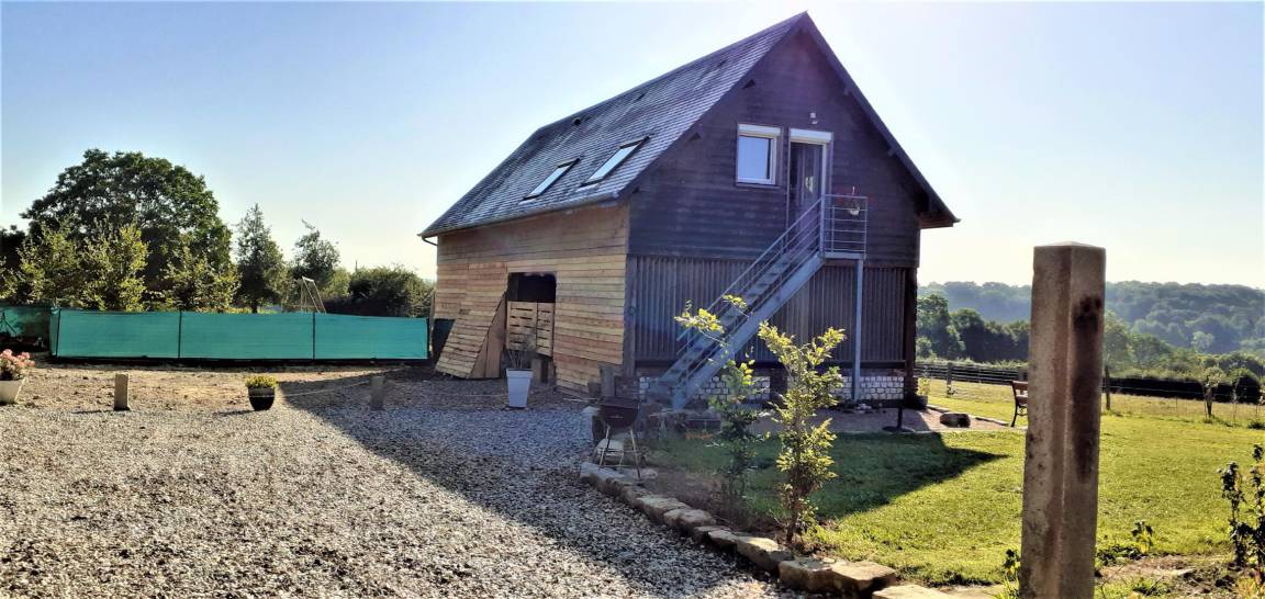 „Super séjour ! Marie Christine a été aux petits soins pour que l'on se sente bien Avec un accueil hyper chaleureux une tarte aux pommes et du cidre nous attendait à notre arrivée. On a eu la chance d'avoir un super soleil Le terrain est vraiment top, notre chienne a adoré pouvoir se balader dans ce grand espace. A proximité de superbes baladez, de jolis petits villages. Nous avons même pu faire une petite balade à vélos grâce aux vélos prêtés par Marie Christine qui a vraiment le cœur sur la main. C'est agréable de se sentir bien accueilli dans un lieu. Nous sommes partis avec un couple d'amis et leur petite fille. Le seul petit truc dommage c'est l'agencement des pièces quand on est plusieurs familles car la 2e et plus grande chambre est en fait dans le salon avec deux lits doubles. Mais à part ça tout était parfait“