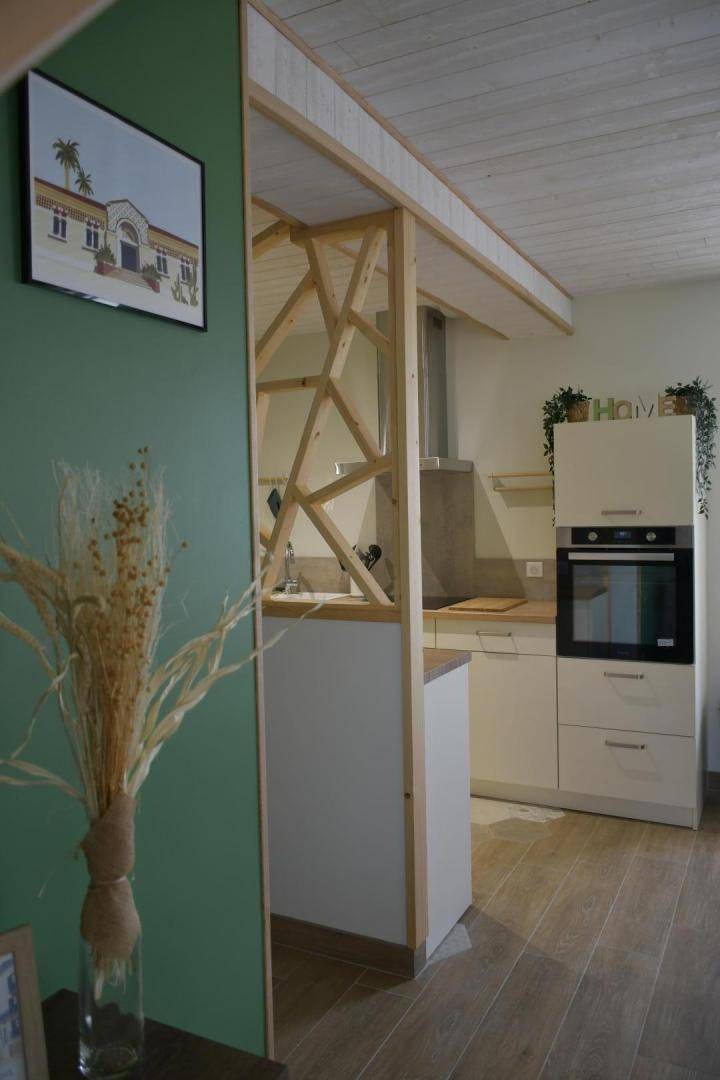 Erdgeschoss: zum Wohnzimmer offene Küche, ein Schlafzimmer für 2 Personen, ein Badezimmer, eine separate Toilette.