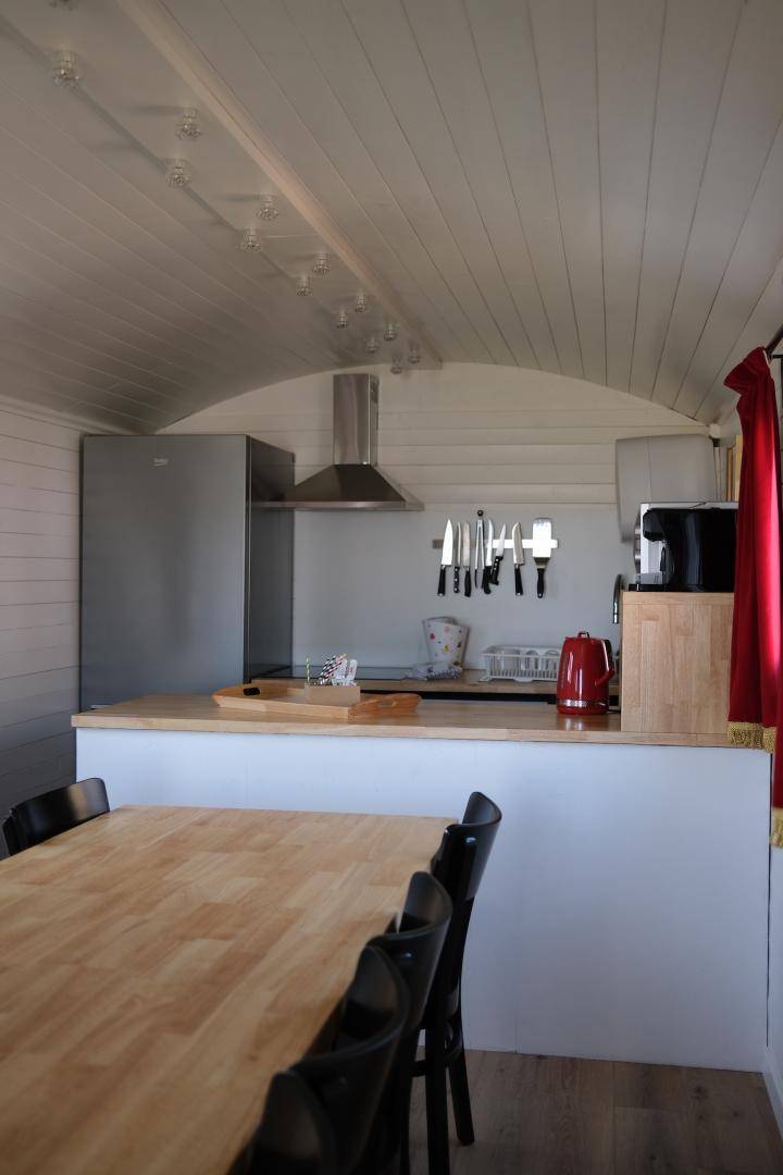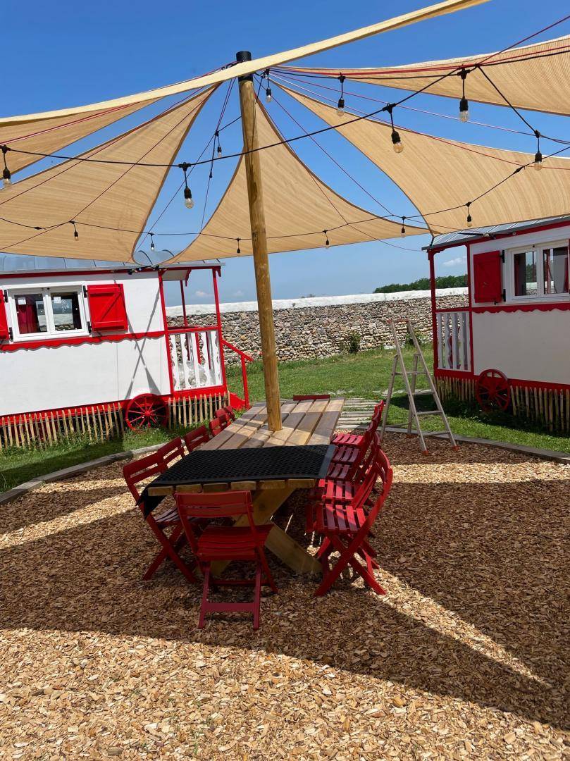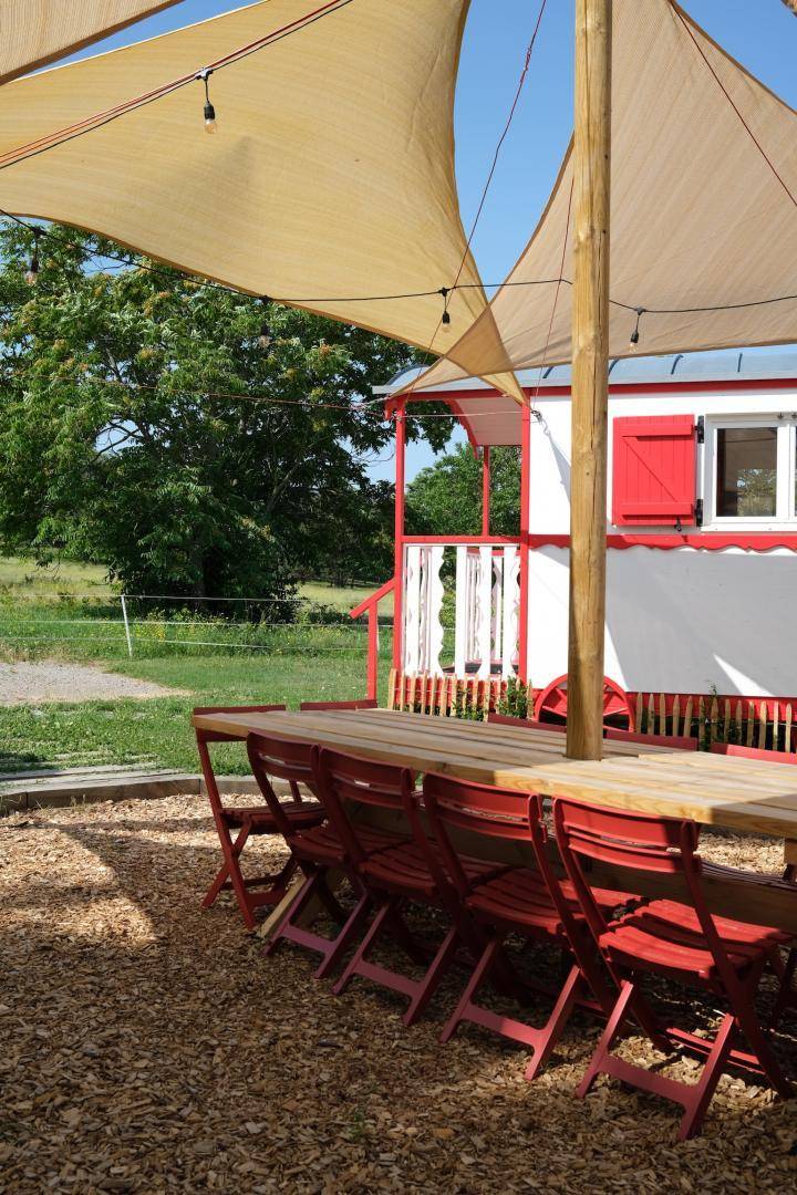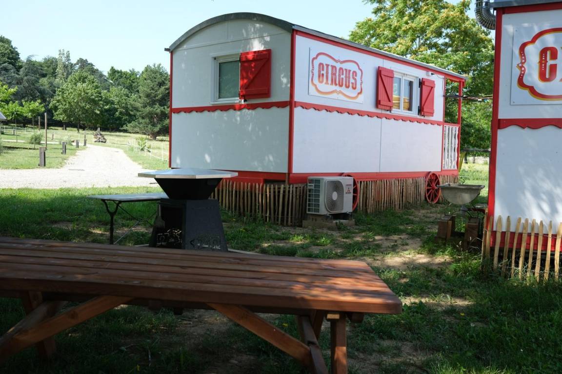 „Cadre dépaysant, ambiance très calme; un grand parc libre d'accès avec des ânes, des chevaux, des chèvres, des canards, un espace jeu pour enfants et grands: Apprécié par tous; propriétaires toujours disponibles pour répondre aux questions (petit tour du domaine en voiture rose pour une de mes petites filles!). Climatisation des roulottes très appréciée, ainsi que les piscines. Petit kit pour la cuisine apprécié (sac poubelle, éponge...) ainsi que le linge de toilette dans chaque roulotte. Toutes les roulottes étaient extrêmement propres ("Maman, pas la peine de sortir ton spray javel") Le point à améliorer serait un accès wifi propre aux roulottes car pas de réseau 5G ou très peu, les prises rj 45 mises à disposition ne sont pas adaptées à nos tablettes et smartphones; et le wifi des autres gites difficilement voire impossible à capter.“