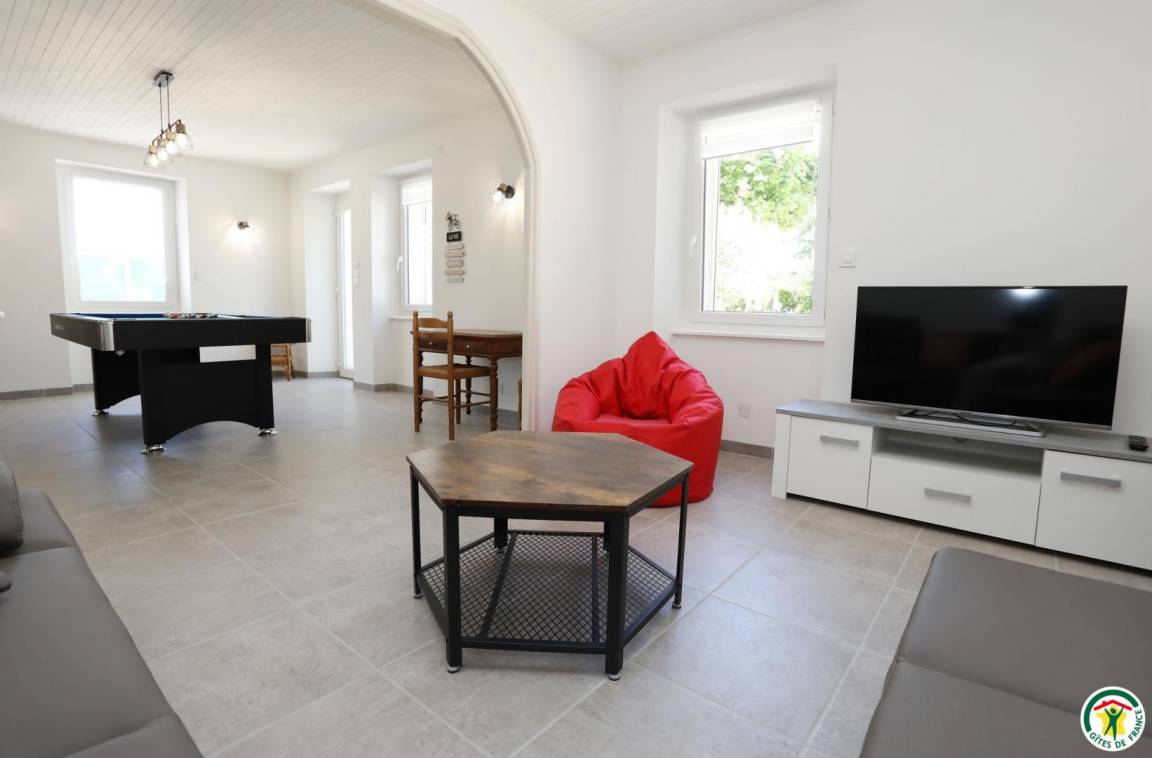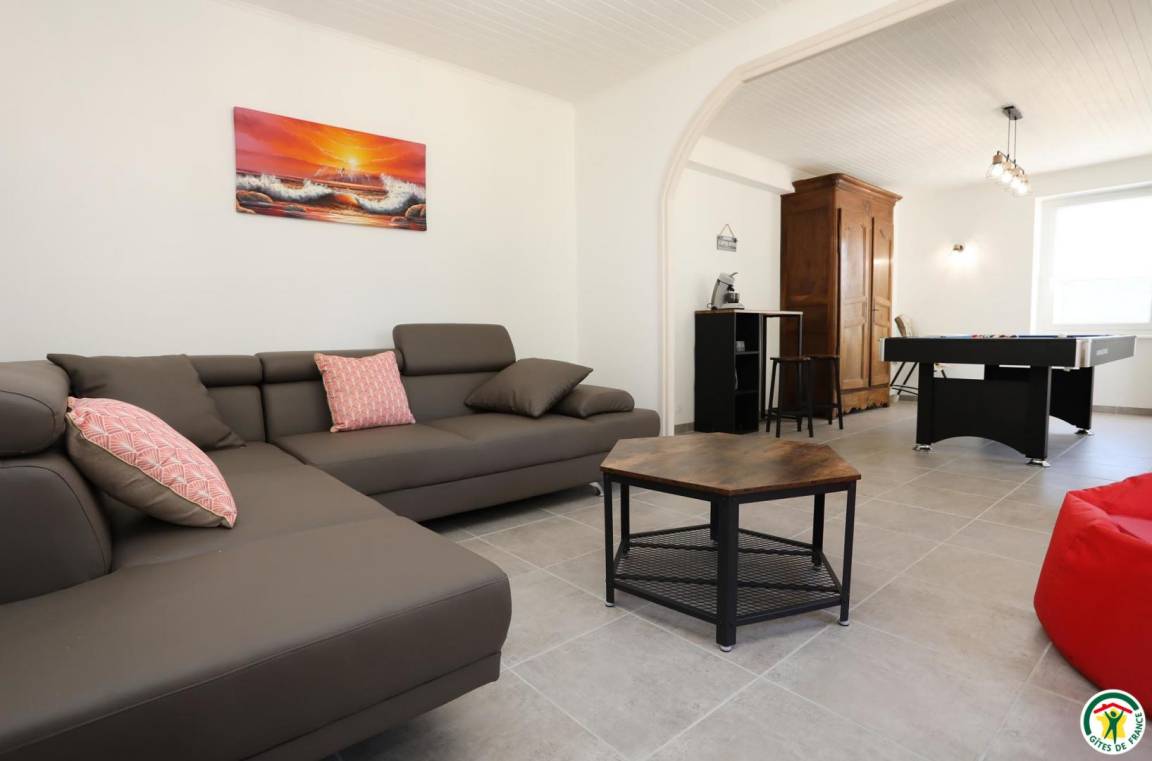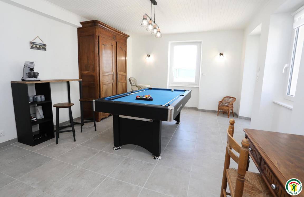 „Nous avons passé un agréable week-end dans un gîte très très propre, très bien équipé et décoré avec beaucoup de goût. Les chambres sont très spacieuses, très bonne literie, tout est très bien équipé. Idéal pour un séjour en famille... tout le monde a passé d'agréables moments autour du billard, du baby foot, d une pétanque et de la table de ping pong. Merci aux propriétaires pour leur accueil très sympathique. Nous reviendrons avec plaisir !“