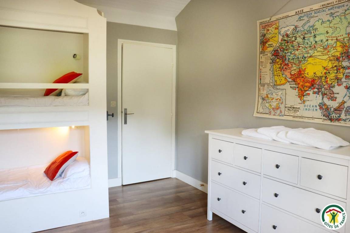 Die Ferienunterkunft grenzt an eine weitere Unterkunft an, verfügt aber über einen eigenen Eingang. Erdgeschoss: Wohnzimmer mit Kamin, Esszimmer, vollständig ausgestattete Küche, Bad mit offener Dusche, WC. Obergeschoss: 4 Schlafzimmer (1 Bett 160 cm) (1 Bett 160 cm) (Etagenbetten mit 4 Schlafplätzen 90 cm) (2 Betten 90 cm) , Badezimmer/WC. Damit Sie sich gleich wohl fühlen, sind die Betten bei Ihrer Ankunft bezogen und die Handtücher liegen bereit.