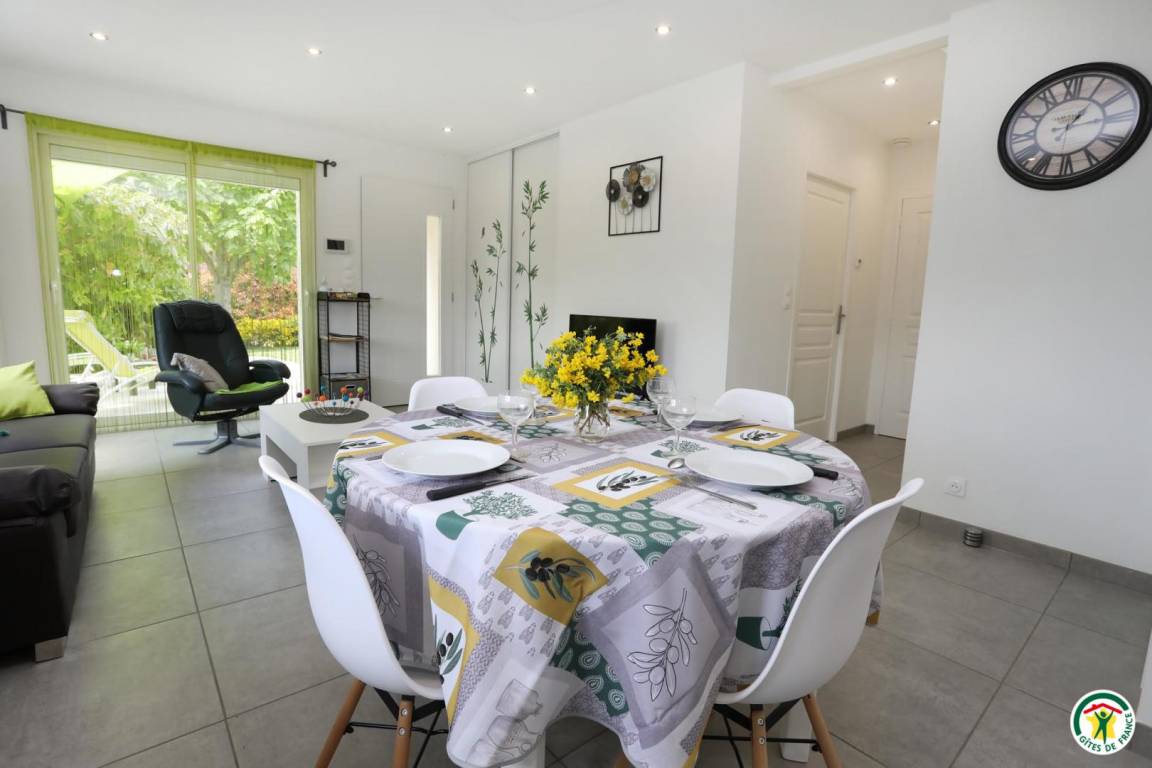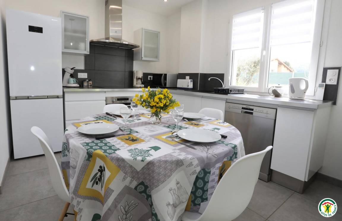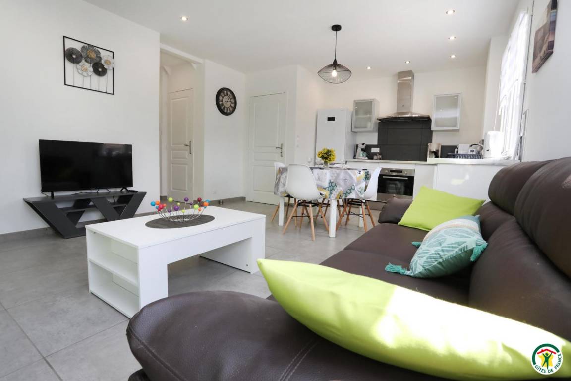 „Séjour très agréable. M et Mme Noir sont un couple très accueillant en même temps que très discret. La maison est neuve et pourvue de tout comfort. Lit et literie, salle de bains excellents. Equipement ménager super complet et d'excellente qualité (cuisine, frigo, lave-vaisselle, lave linge, etc.) . Quelques objets déco muraux artisanaux témoignant d'un investissement très personnel (heart and soul) dans le gîte et la volonté d'offrir un beau chez soi aux hôtes. Climatisation super agréable. On peut garer sa voiture et vélos. Diverses infos touristiques sont offerts.“