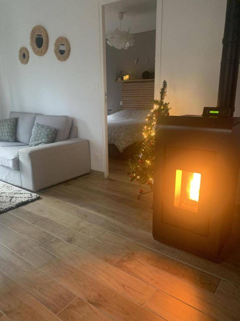Es umfasst eine Küche, ein Wohnzimmer mit Pelletofen, eine Waschküche, 2 Schlafzimmer (2 160 x 190 Betten), ein Badezimmer mit Dusche und eine Toilette.