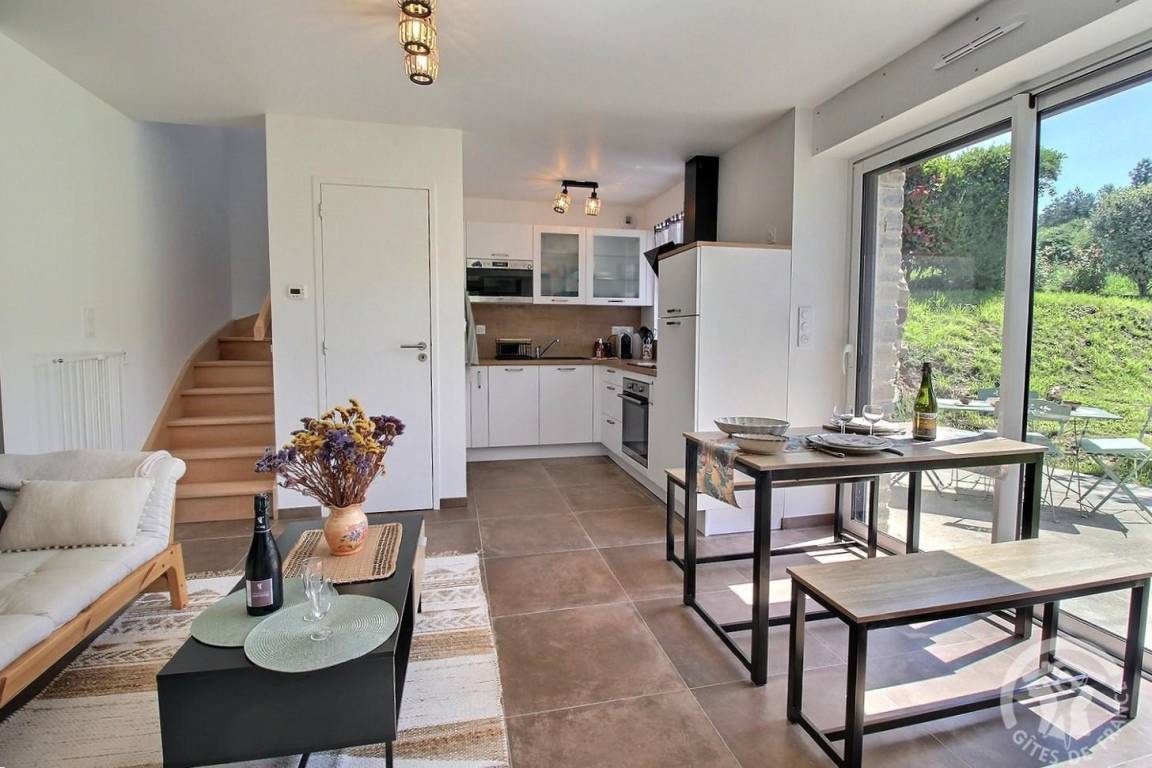 „Maison pour deux personnes, particulièrement agréable à vivre, avec une grande baie vitrée dans le salon et une chambre accueillante. Cuisine très bien équipée, la terrasse est un plus, même si le temps ne nous a permis d'en profiter.“