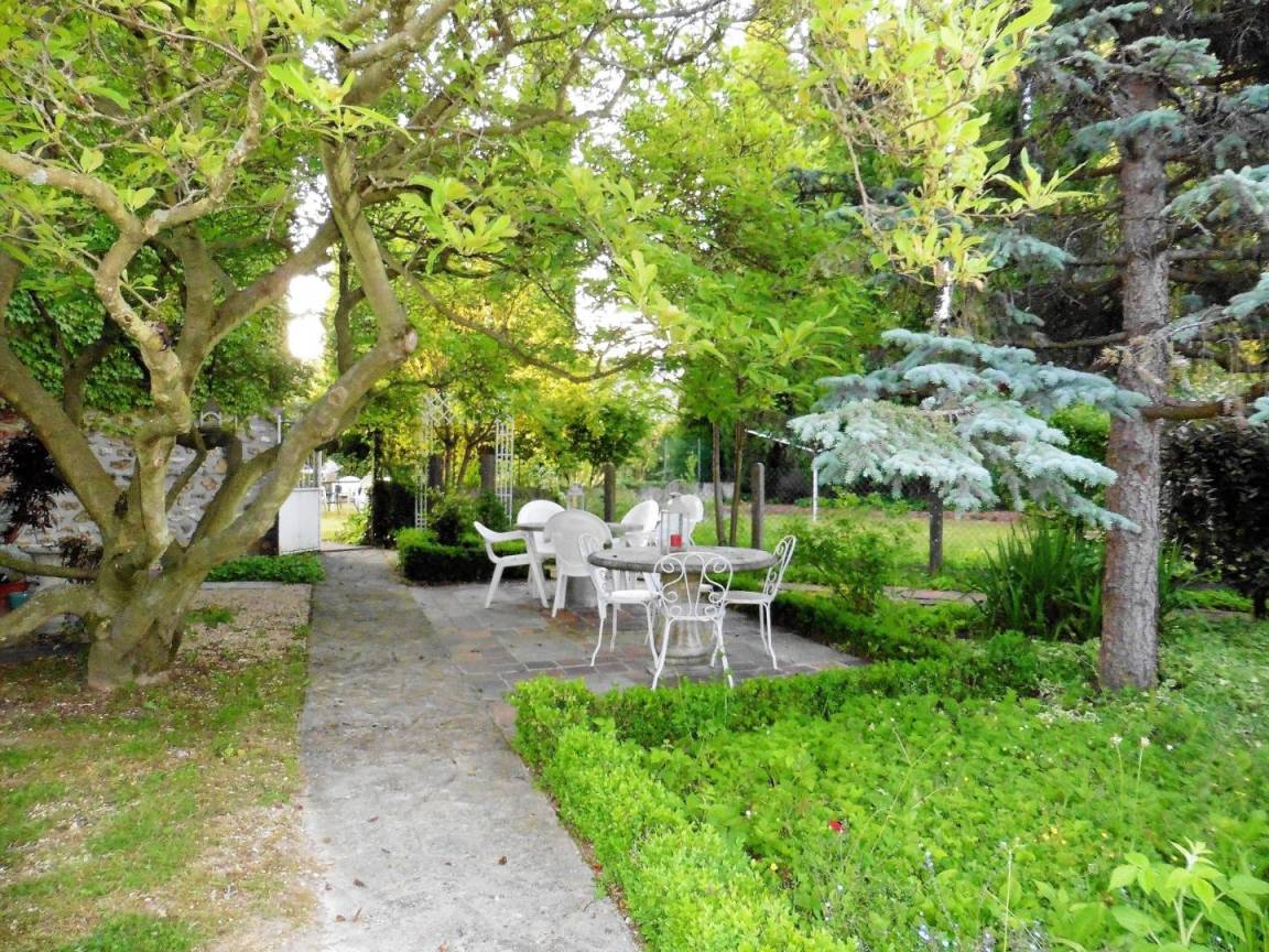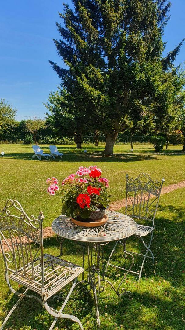 Genießen Sie die Ruhe und Stille der Landschaft und entspannen Sie sich auf einer Sonnenliege im großen, gepflegten Garten mit Kinderspielplatz.