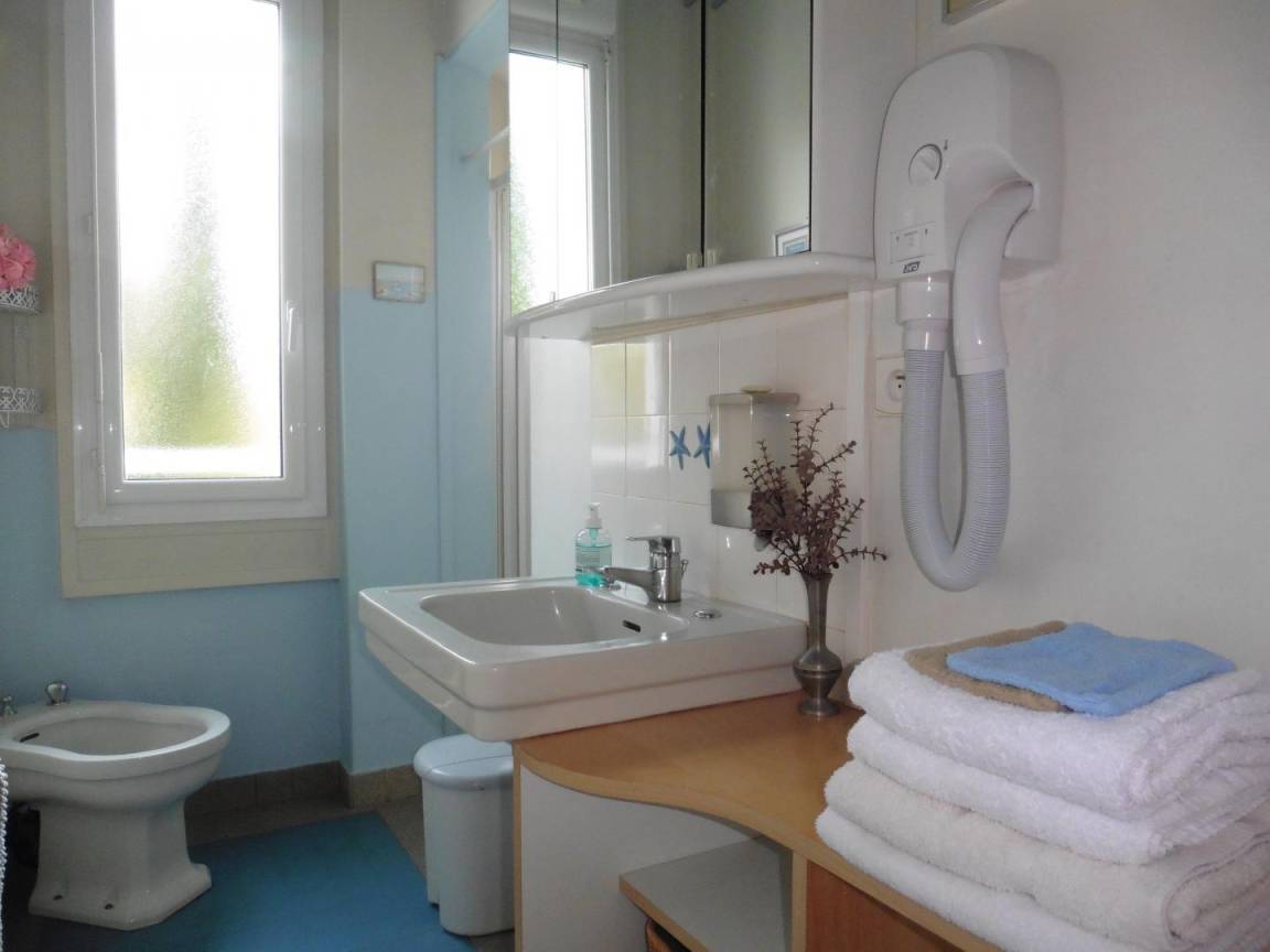 1. Obergeschoss: 1 Schlafzimmer mit 1 Doppelbett (160 cm). 1 Schlafzimmer mit 2 Einzelbetten (90 cm). 1 Schlafzimmer mit 1 Doppelbett (140 cm) + 1 Einzelbett (90 cm). Duschbad. WC.
