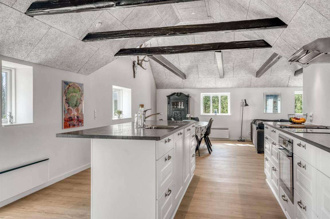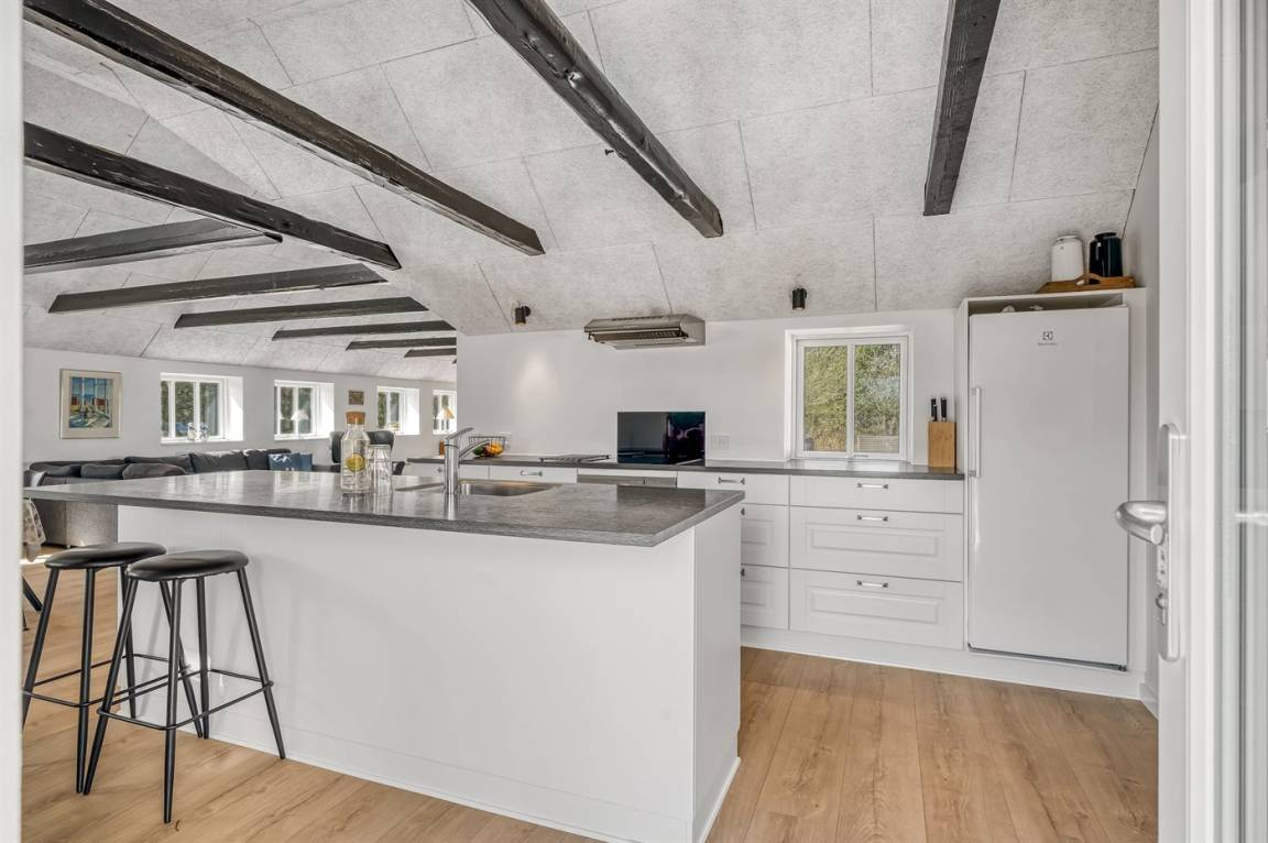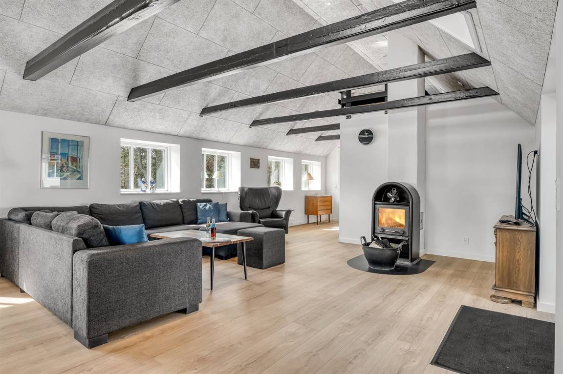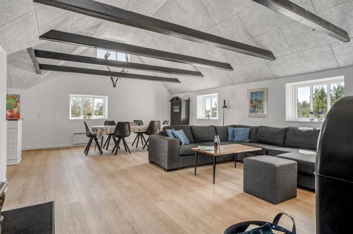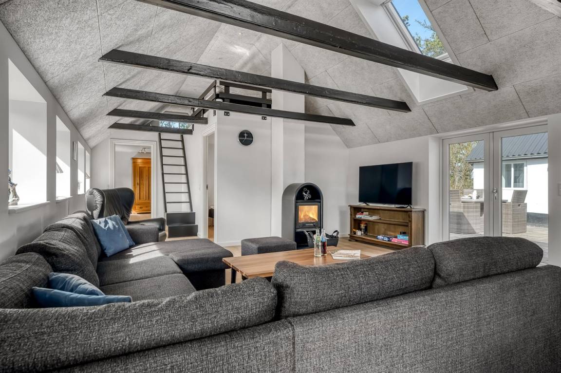 Dieses schöne und energiefreundliche Ferienhaus liegt in Lyngby Thy, dem allerbesten Bereich vom Nationalpark Thy. Hier besteht die einmalige Gelegenheit die Natur aus nächster Nähe zu erleben, und eventuell die heiseren Schreie der Kraniche zu hören. Von Mitte September bis Ende Oktober besteht außerdem die Möglichkeit, aus der Ferne, das Röhren der Hirsche zu hören. Vom Hügel hinter dem Haus haben Sie eine phantastische Aussicht über die hügelige Heide-/Dünenlandschaft und es besteht die Möglichkeit Rehe und anderes Wild zu beobachten. Naturfreunde werden einen Aufenthalt in diesem schönen Ferienhaus zu schätzen wissen! Hinter dem Haus gibt es ein großes, eingezäuntes Gebiet, das bei Gästen mit Hunden besonders beliebt ist. Übrigens: Das eine Doppelbett steht im offenen Obergeschoss.