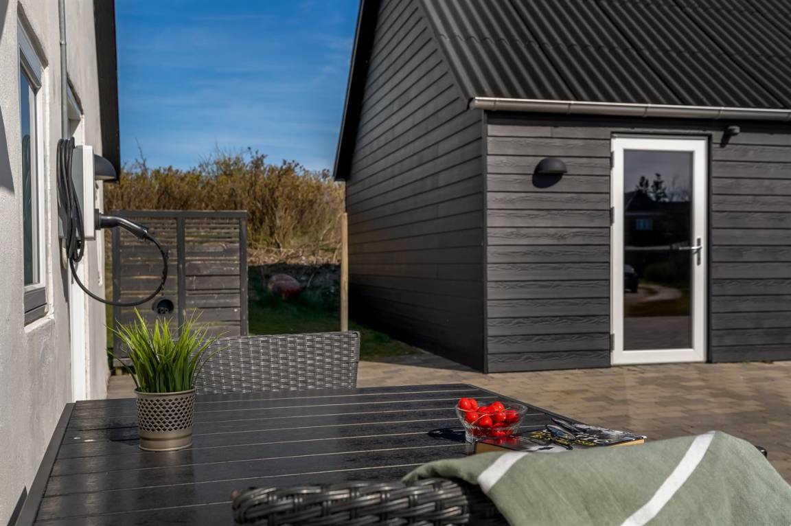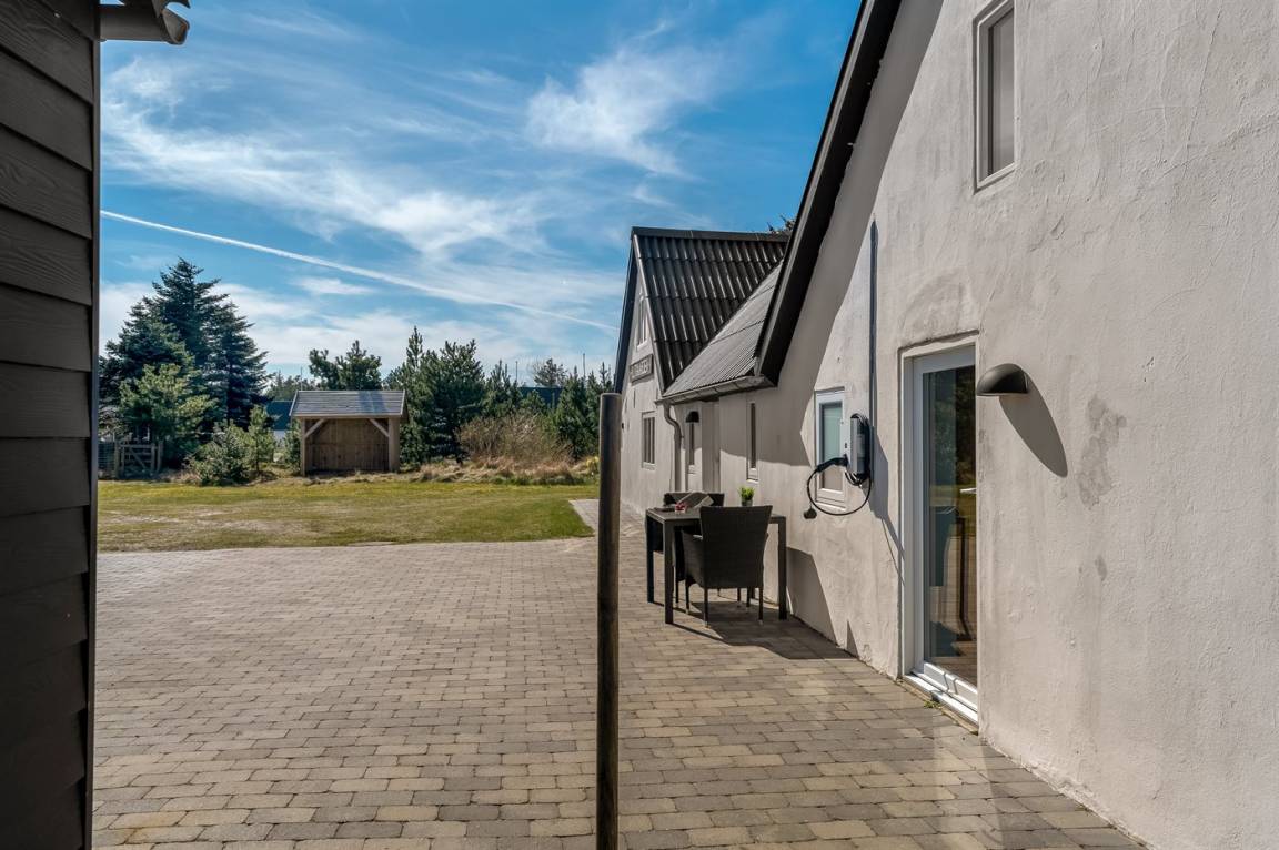 DraußenDie Ferienunterkunft liegt auf einem 2100 m² großen Naturgrundstück. Das Grundstück ist eingezäunt. Die Entfernung zum Meer beträgt 1200 m. Die nächste Einkaufsmöglichkeit liegt 8000 m entfernt. Es steht ein 90 m² Terrassenareal zur Verfügung. Geräteraum. Es steht ein Grill zur Verfügung. Es ist ein Ladestecker für Elektroautos installiert. Parkplatz auf dem Grundstück.