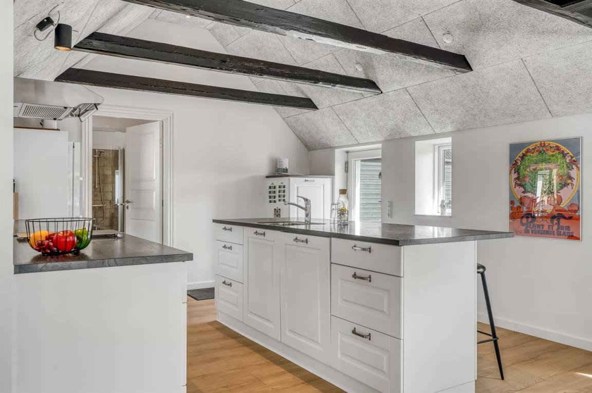 KücheDie Küche ist mit Kühlschrank ausgestattet. Außerdem gibt es 4 Induktions-Kochzonen, Umluftofen sowie Geschirrspüler.