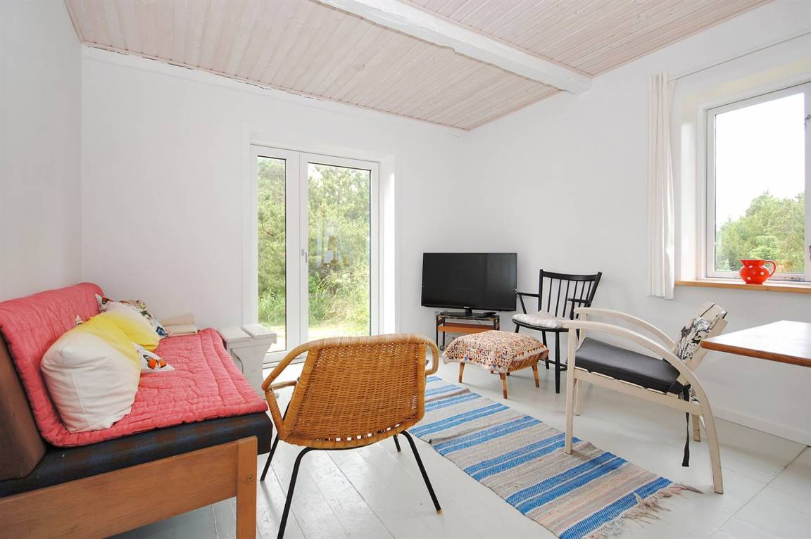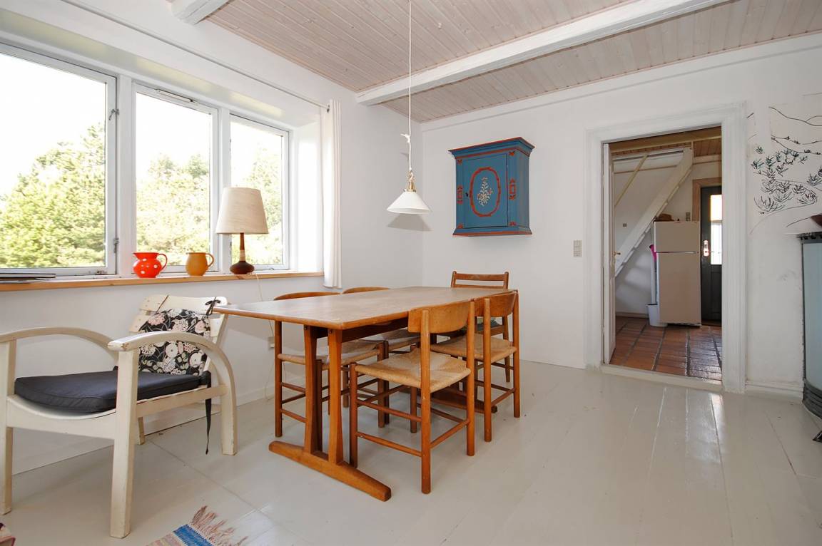 Dieses Ferienhaus, das ehemals von einer Fischerfamilie bewohnt wurde, liegt in Lyngby Thy im Nationalpark Thy. Ein Haus für die Gäste, die auf eine einfache Einrichtung und eine Lage in ruhiger, naturschöner Umgebung Wert legen. Übrigens: Das Badezimmer und de Toilette befinden sich in einem kleinen Nebengebäude. Eine steile Treppe führt in das Obergeschoss – hier finden Sie ein Schlafzimmer mit 2 Einzelbetten sowie einen Aufenthaltsraum mit 2 Schlafplätzen auf Matratzen (siehe Grundriss).