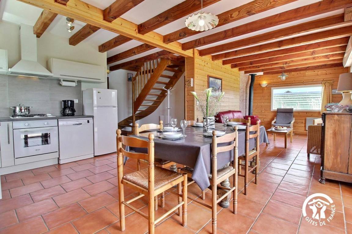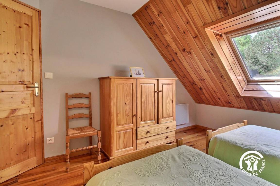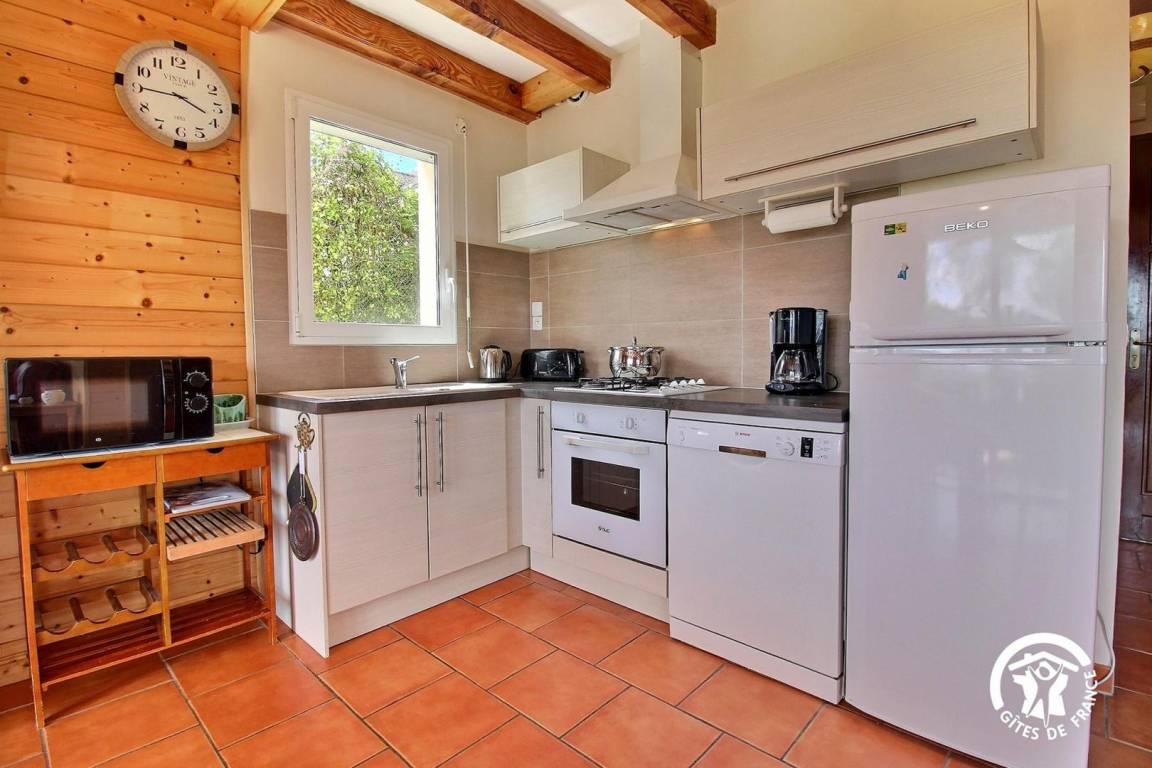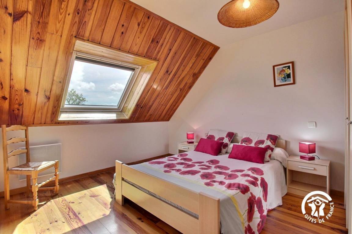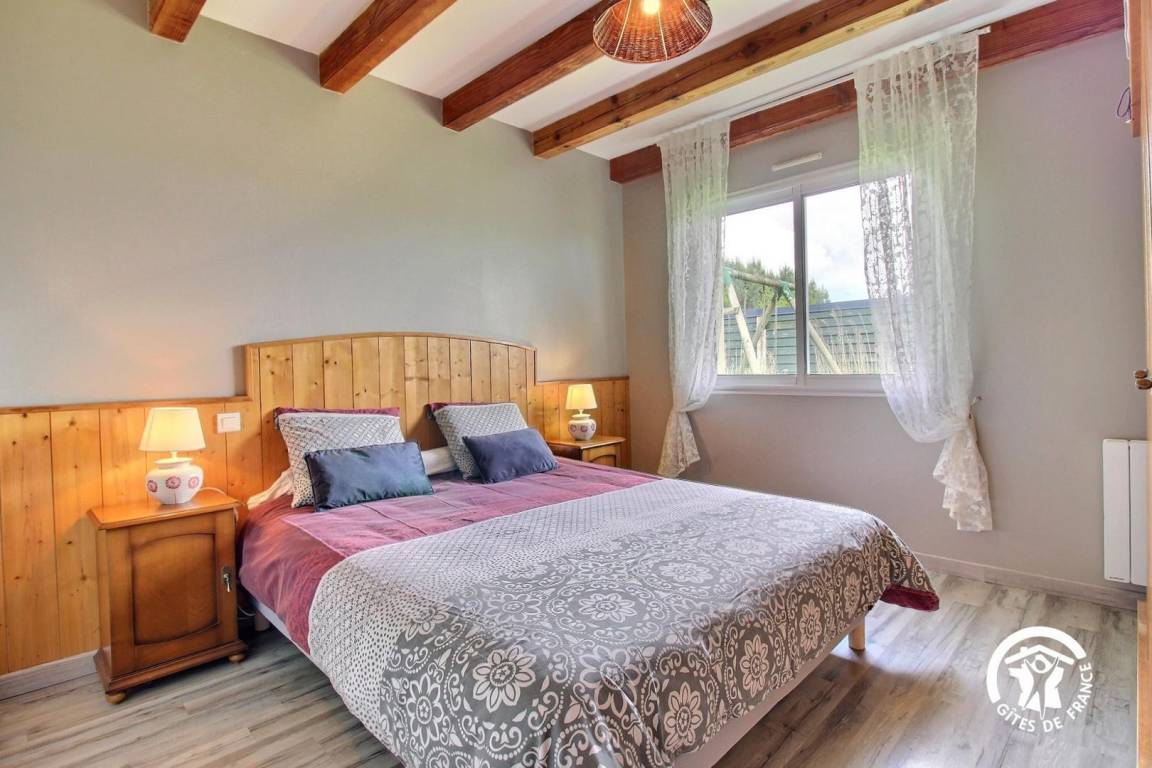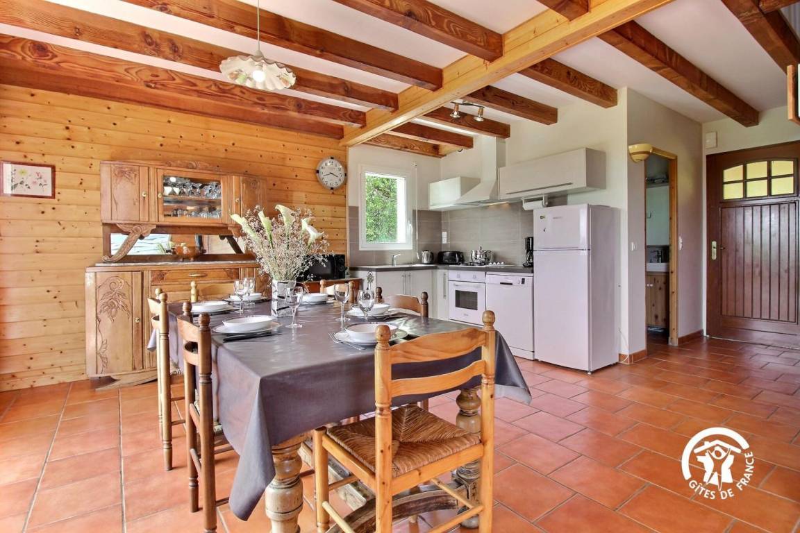 „Maison récente mais chaleureuse car beaucoup de bois. Deux grandes baies procurent beaucoup de luminosité et offrent une vue magnifique. Très bien équipée en électroménagers et en ustensiles. Le matelas du lit de 160 est dur, c'est bien quand il fait chaud mais il peut ne pas convenir à tous. Le terrain fait plus petit que sur la photo mais nos 2 grands chiens n'en ont pas souffert car il y a de grandes étendus très pratiques devant la maison pour les balades. Les belles randonnées possibles sont très nombreuses et il y a plusieurs villages intéressants à visiter, tous cela à moins de 45 minutes en voiture.“