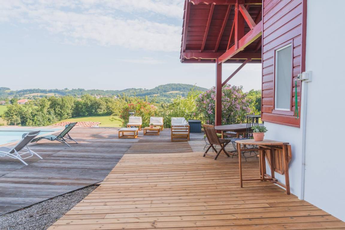 „Super accueil des propriétaires Gîte bien décoré Joli point de vue. Calme, situé moins de 5 minutes de Saint Palais Maison bien protégé des moustiques et des mouches envahissantes du Pays Basque.Maison presque complète à la limite une borne de recharge pour PHEV serait un plus quasi introuvable dans les gîtes de la région À conseiller“
