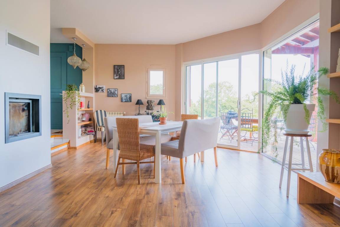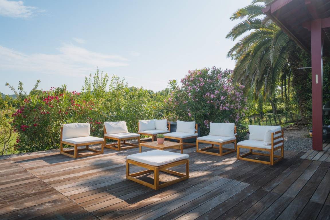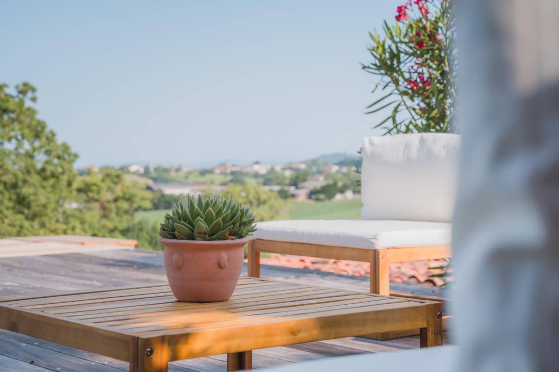 „Un superbe gîte: Maison typique avec une décoration très recherchée et de grand volume. Une belle piscine et une très belle vue depuis la terrasse sur la campagne environnante et au fond, la chaîne des Pyrénées.“