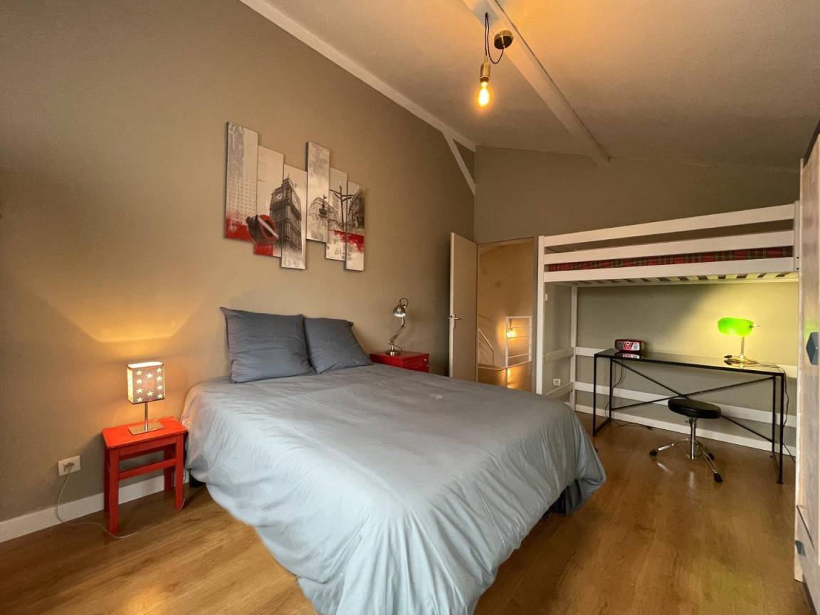 - 1 Schlafzimmer mit 1 140-cm-Bett und 1 90-cm-Mezzanine-Bett, einem Schreibtisch