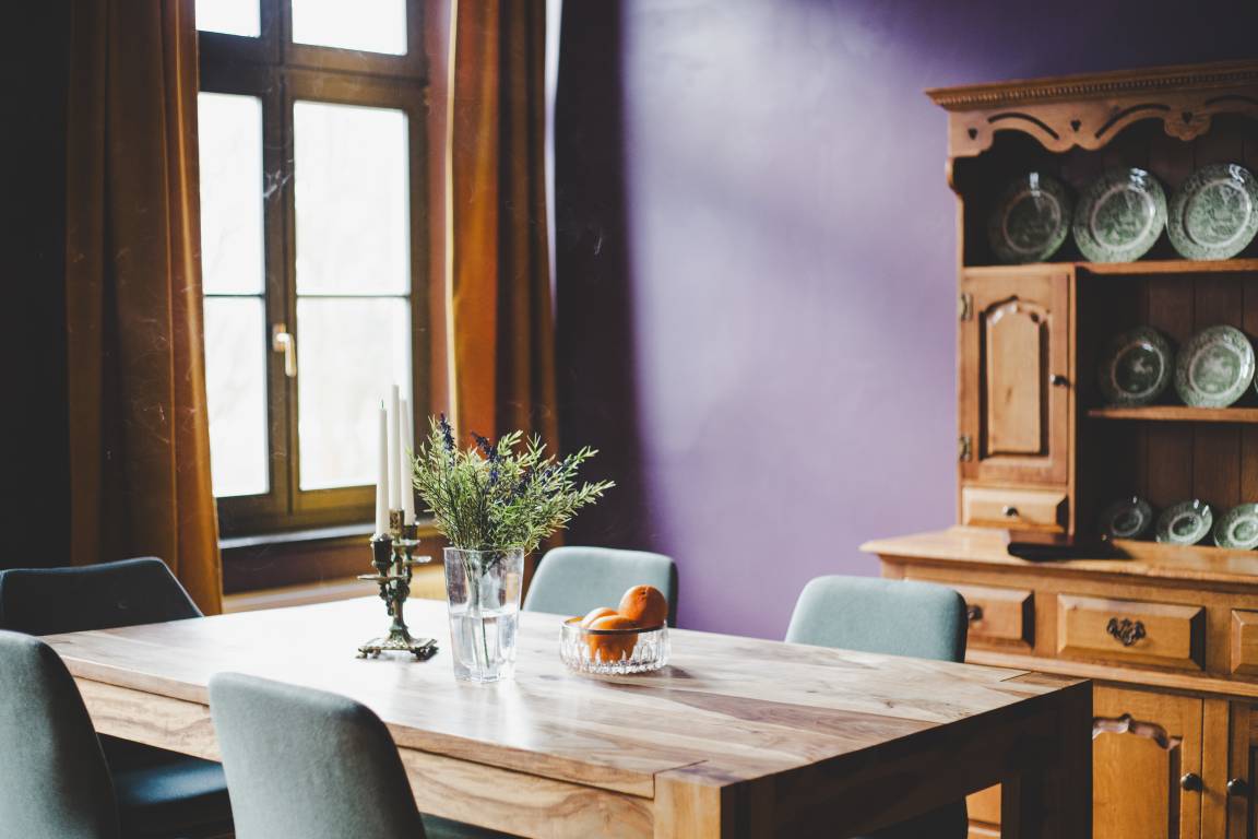 Die große Wohnküche bietet der ganzen Familie Platz. Auch hier können die Eltern einmal ausspannen und den Kindern beim Spielen zusehen oder den Ausflug planen. Die voll ausgestattete Küche sowie das historische Buffet lassen keine Wünsche offen.