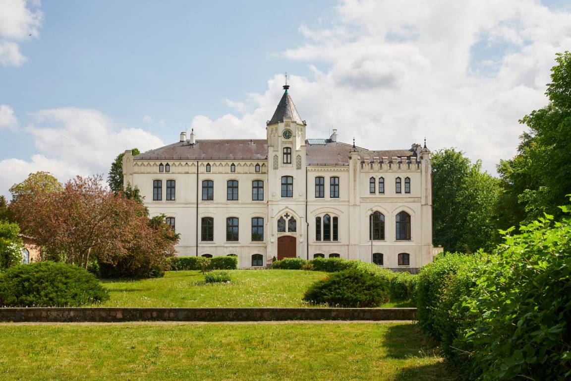 Die Suite, benannt nach dem letzten Hausherren, verfügt mit ihren 85m² über zwei Schlafzimmer, eine große Wohnküche und ein Badezimmer mit Dusche und freistehender Badewanne. Von hier aus können Sie ihren Blick über den gesamten Gutspark schweifen lassen.