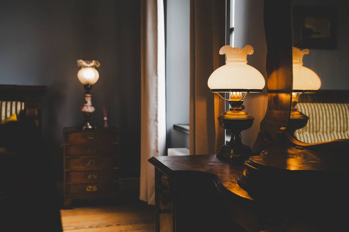 Das großzügige Schlafzimmer bietet mit seinem Kingsize-Bett unseren Gästen einen erholsamen Schlaf und bei offenem Vorhang beschert der Blick auf den einzigartigen Sternenhimmel romantische Abendstunden. Das große historische Sofa und die hochwertige Ausstattung versetzen unsere Gäste in die herrschaftlichen Zeiten und hinterlassen einen bleibenden Eindruck.