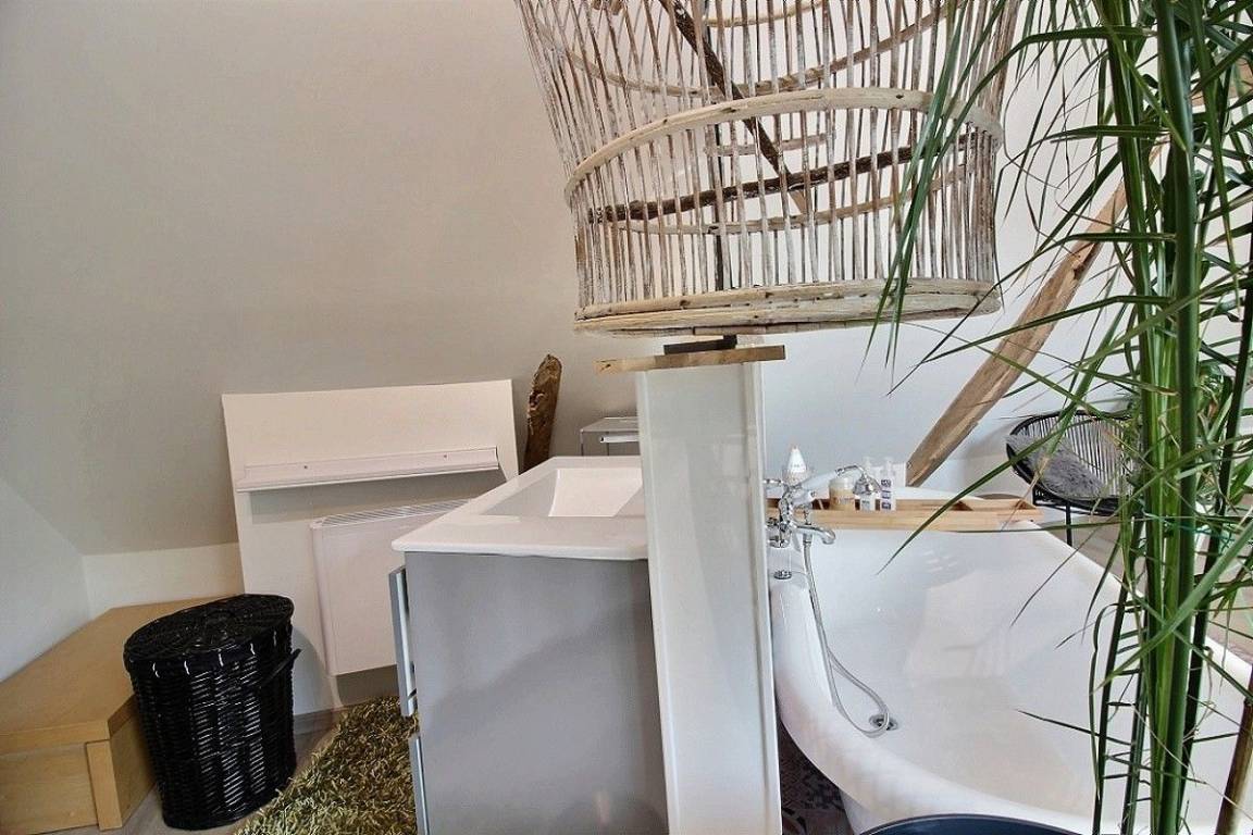Dieses Ferienhaus bietet: Im Erdgeschoss: kleinen Eingangsraum, Ess-Wohnzimmer mit Kamineinsatz (1 Korb Holz gratis), Küche mit Öffnung zum Ess-Wohnsalon, Waschraum mit Zugang von draußen. Im 1. Stock: 1 Zimmer (2 elektrische Einzelbetten 90x190), 1 Zimmer für 1 Person (1 Bett 140x190), Bad mit Dusche, separates WC. Im 2. Stock: eine mit seiner Badewanne verschönerte, geräumige Schlafzimmer-Suite (1 Bett für 2 Personen 160x200), sonderbares Badezimmer, separates WC mit Handbecken. Das Haus ist benachbart mit einer weiteren Urlaubsvermietung, hat einen großen, geschotterten Innenhof und einen privaten, nicht verzäunten Garten von 300 m². Telefon ist begrenzt (nur eingehende Anrufe) und Wi-Fi ab 20. Juni vorhanden.