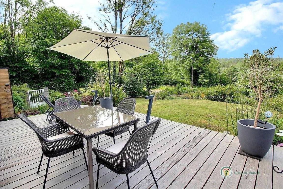 „Un véritable petit cocon, décoré et aménagé avec beaucoup de soin. Propre et très bien équipé. Cadre idyllique au milieu de la forêt. Idéal pour se ressourcer au calme tout en étant proche de la petite ville, qui dispose de petits commerces de proximité. A distance raisonnable de beaucoup de sites touristiques. Les propriétaires sont soucieux du bien-être des locataires et très gentils et rigoureux (même si nous aurions aimé un peu plus de souplesse quant à notre heure d'arrivée...)“