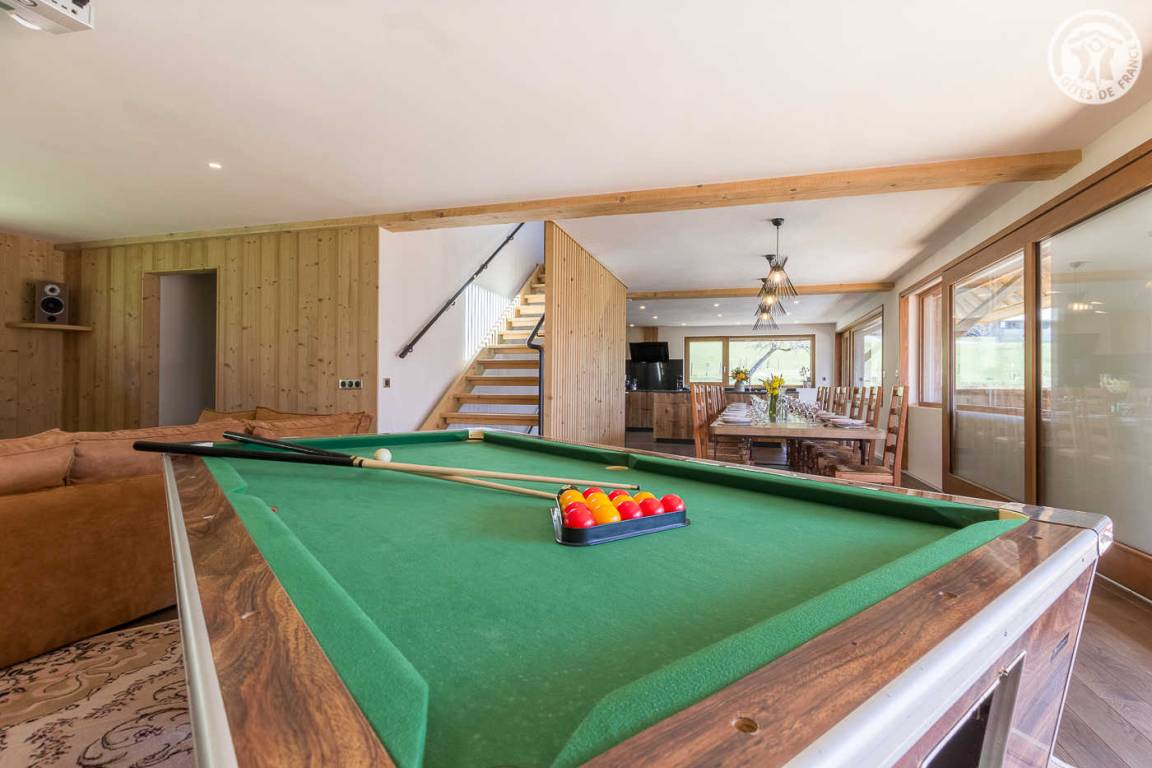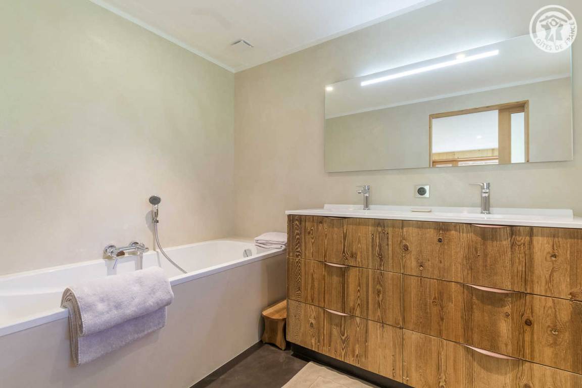 Individuelles Chalet auf 3 Ebenen, begrenzt von einem kleinen, teilweise geschützten Bach. Erdgeschoss: Eingangshalle, Garage, Waschküche. 1. Stock: Wohnzimmer-Küche mit Billardtisch, Videoprojektor und Zugang zu einer großen Balkonterrasse, Sauna, WC, 1 Schlafzimmer (1 160x200 cm Bett) mit eigenem Bad (Badewanne + Dusche). 2. Stock: Erholungsbereich mit TV, 4 Schlafzimmer mit Waschbecken (1 Doppelbett 160x200 cm / 1 Doppelbett 160x200 cm / 1 Doppelbett 160x200 cm + 2 Etagenbetten / 1 Doppelbett 160x200 cm + 2 Etagenbetten), 2 Badezimmer (Duschen) und separates WC. Privates Land rund um die Gîte.
