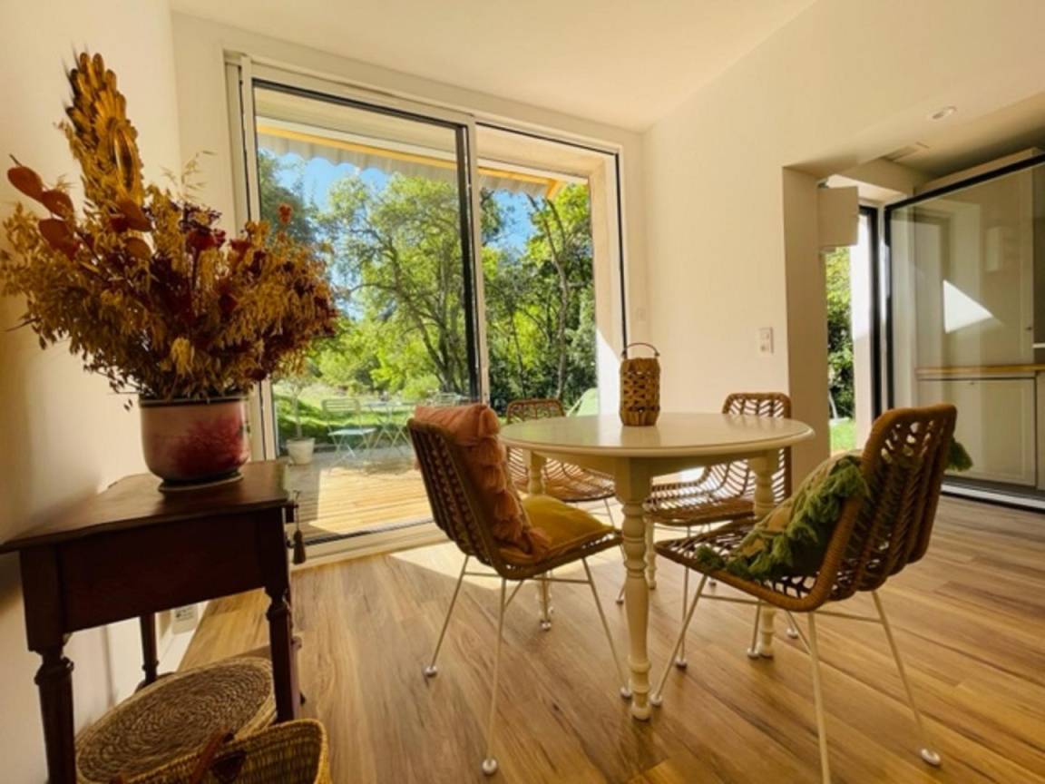 Sandrines Haus ist ein angenehmes, unabhängiges Ferienhaus, praktisch und mit allen Annehmlichkeiten eines richtigen Zuhauses ausgestattet. Durch die Eingangstür gelangt man in das Wohnzimmer mit voll ausgestatteter Küchenzeile, Wohn-/Esszimmer mit Erkerfenster, das auf die Terrasse führt, Duschraum/WC, 2 Schlafzimmer, erreichbar über 3 Stufen (1x140x190) (2x90x190), jedes mit Erkerfenster und Terrasse. Draußen, nur für Sie: Garten, Terrasse, Parkplatz, nicht eingezäuntes Grundstück. Ruhiger und erholsamer Ort, ideal für einen wundervollen Urlaub. Einen Fernseher gibt es hier nicht, aber eine Leinwand und einen DVD-Player.