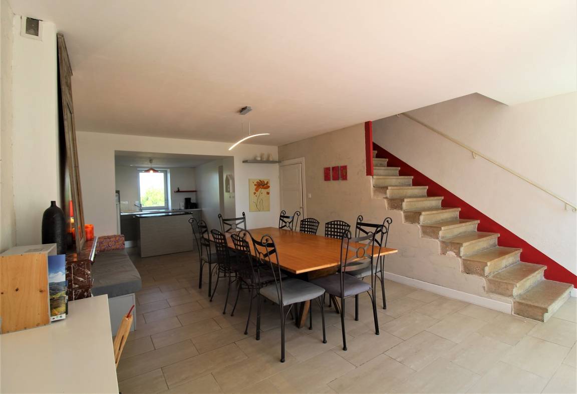 „Relation très facile avec la propriétaire, très beau cadre au milieu des vignes, grand parking, cuisine très fonctionnelle. Il manquait des torchons et éponge fournis tout de suite après avoir demandé Serviettes usées et rêches, 6 chambres spacieuses (pas de tapis de bain de fourni et balai brosse) par contre les deux petits relax faisant offices de lit une personne très inconfortables pour passer la nuit. le ménage est vraiment light dans les chambres, prix correct pour le nombre de personnes. En gros, l espace de salle à manger reste juste pour 14 mais avec des tables d appoint ca fait le joint“