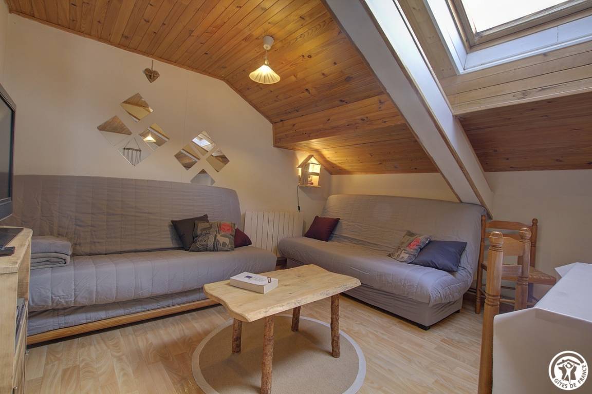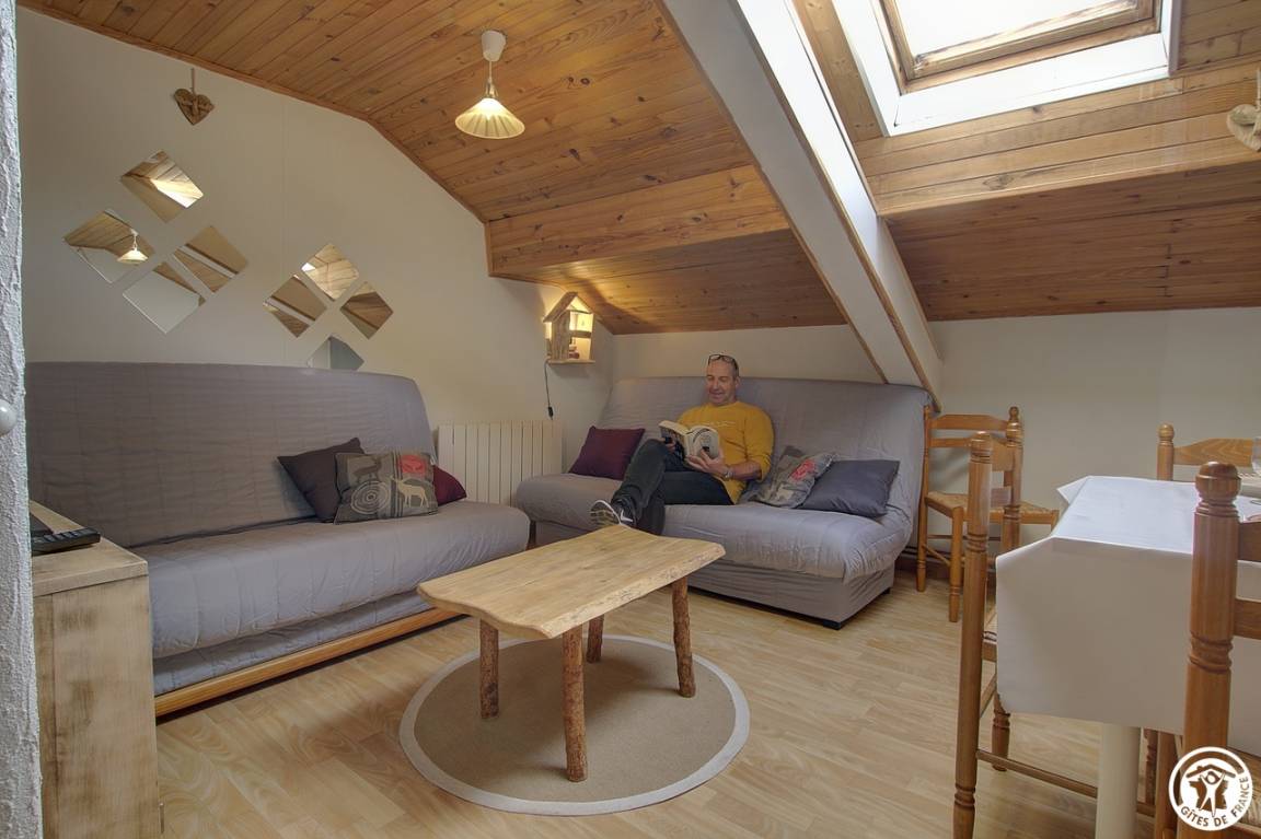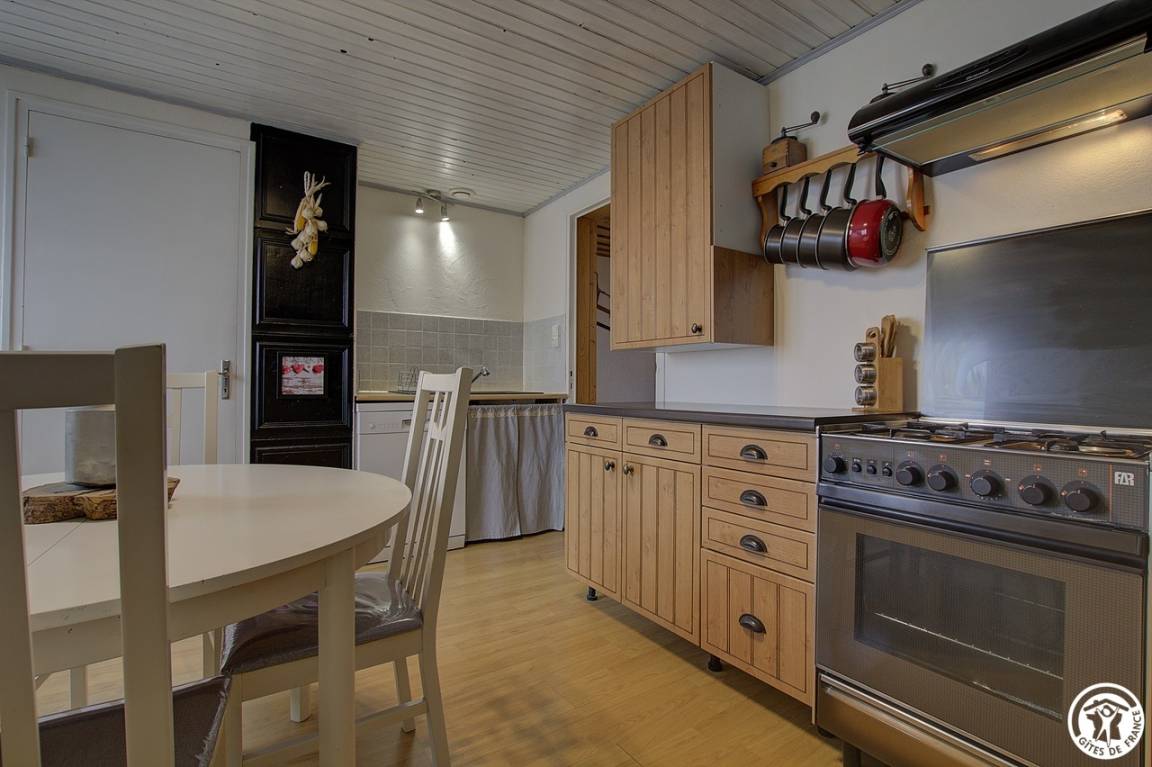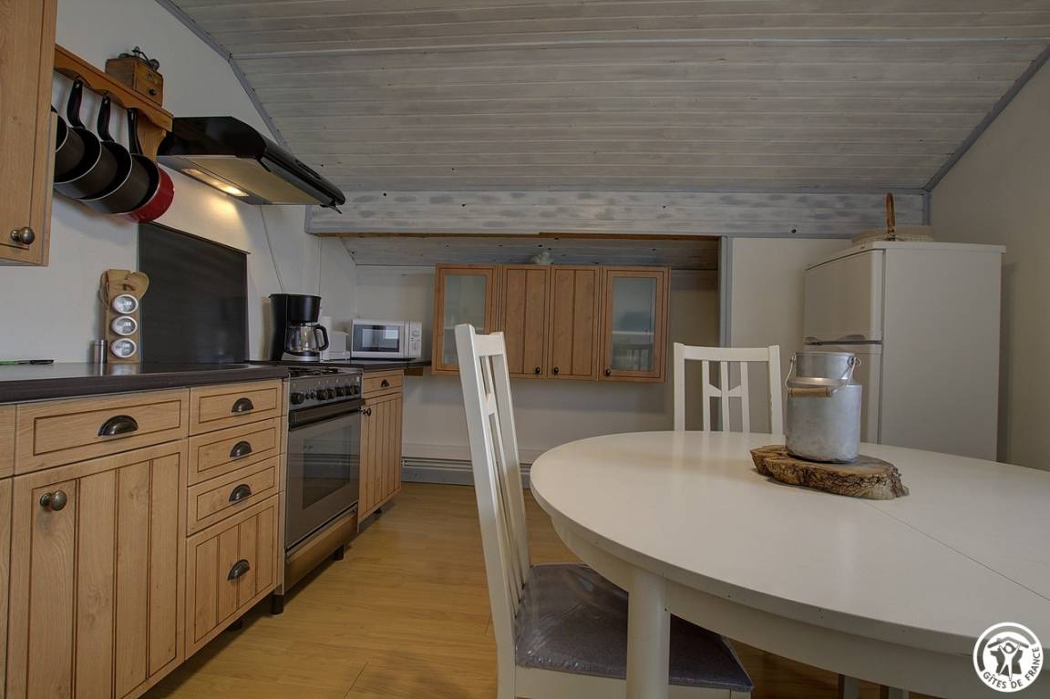 Dieses Ferienhaus liegt im Regionalen Naturpark Haut-Jura auf 920 Metern Höhe, unweit der alten Käserei des Dorfes. Es wurde im Chalet-Stil renoviert und bietet Platz für bis zu sechs Personen. Das Ferienhaus verfügt über drei Schlafzimmer, einen Schlafbereich im Zwischengeschoss und zwei Badezimmer. Der Zugang erfolgt über eine Innentreppe, die in den zweiten und obersten Stock eines Hauses führt. Die Eingangshalle mit Kaminofen öffnet sich zu einem Wohn-/Esszimmer und einer hellen, funktionalen Küche. Die Gäste haben die Wahl zwischen drei Schlafzimmern: einem Doppelbett (140 cm), einem Queensize-Bett (160 x 200 cm) mit eigenem Duschbad und WC sowie zwei Einzelbetten (90 x 190 cm). Es gibt außerdem ein zweites Badezimmer mit WC. Für Kinder und Erwachsene gleichermaßen bietet der über eine steile Leiter erreichbare Entspannungsbereich im Dachgeschoss (ohne Fenster) einen idealen Ort zum Lesen oder Spielen. Geheizt wird mit Strom und Holz. Die Betten sind bei Ihrer Ankunft bezogen. Das