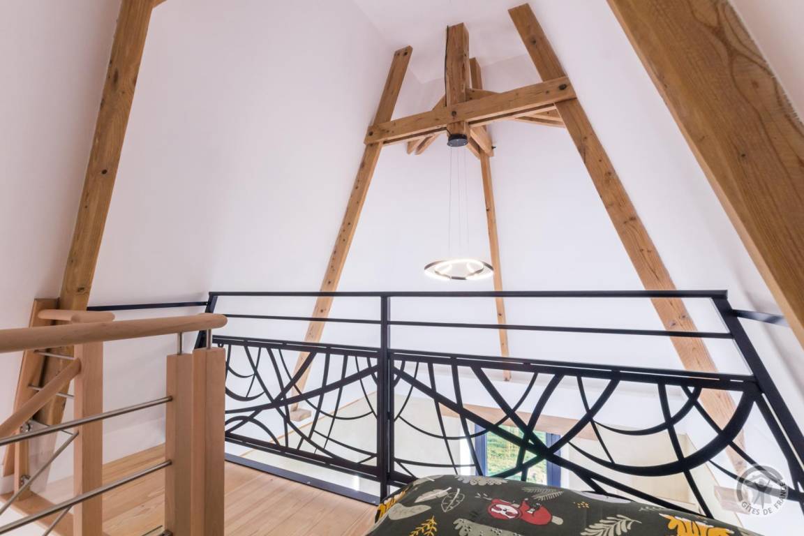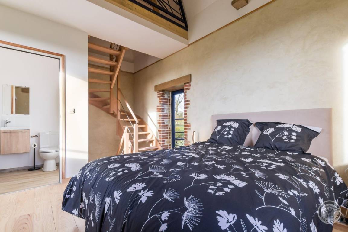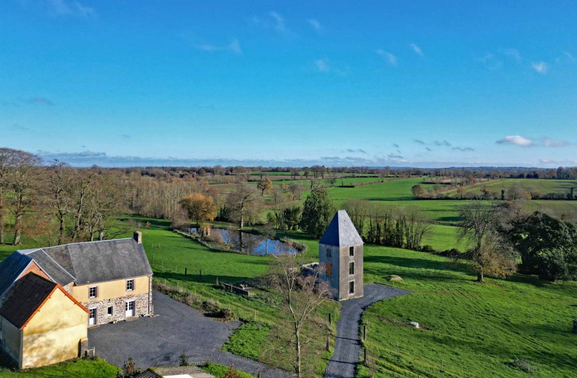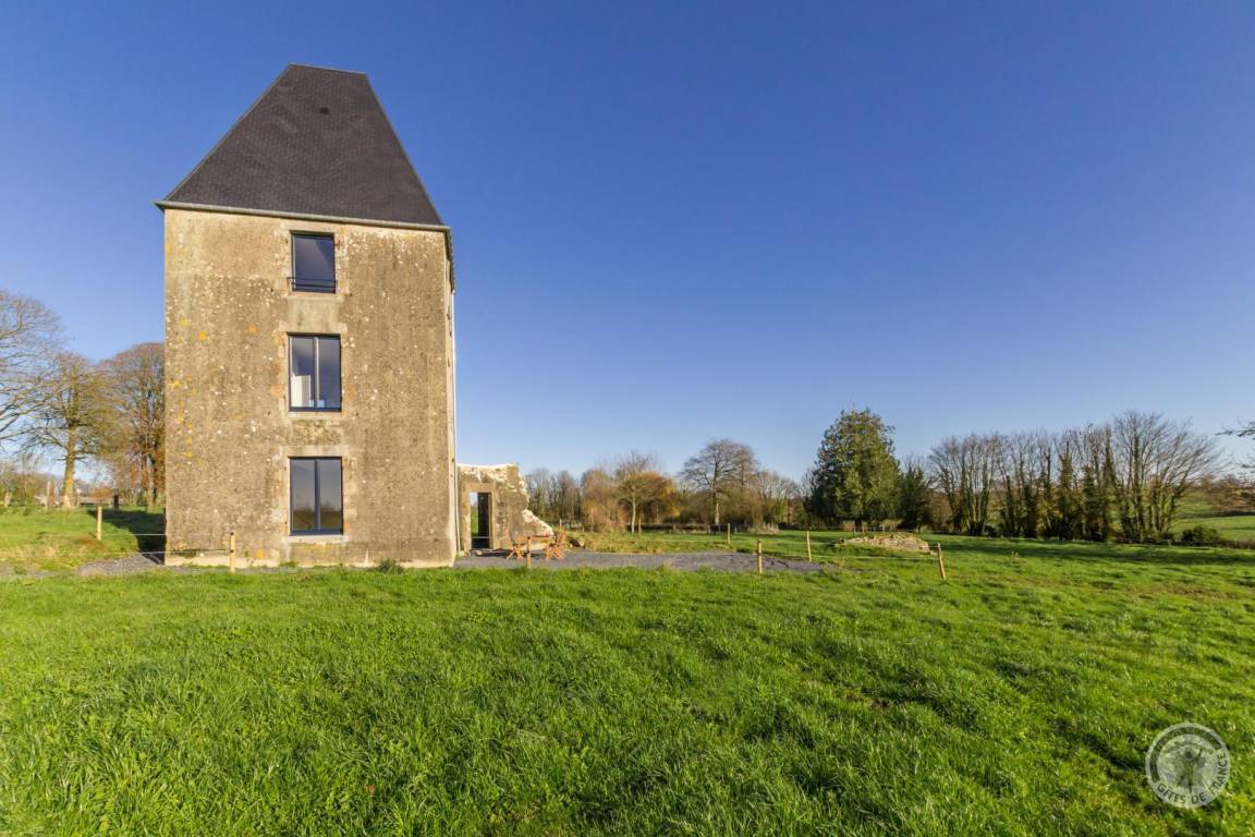 Die lange Auffahrt zu Joris' Bauernhof führt Sie allmählich ins Herz der normannischen Landschaft. Einst führte diese Auffahrt zum Château de Vesly, das 1944 bis auf einen Turm in den Bombenangriffen fast vollständig zerstört wurde. An diesem ungewöhnlichen Ort träumte der junge Besitzer von einem Ferienhaus und schuf auf diesen Ruinen nach jahrelanger Arbeit ein gemütliches, vierstöckiges Domizil. Die großen Fenster bieten von jeder Etage einen traumhaften Panoramablick in die Natur. Die geräumige Balkonterrasse ist eine wahre Oase der Ruhe, wo man in aller Ruhe Rehe, Füchse oder Vögel am Teich oder in den Hecken beobachten kann. Der Bau dieses naturnahen Wohnraums (Naturputz, Solaranlage etc.) ist daher von Respekt vor der Umwelt geprägt. Diese Rückbesinnung auf das Wesentliche teilt Joris gerne mit anderen und hat sie in dieses Projekt einfließen lassen.