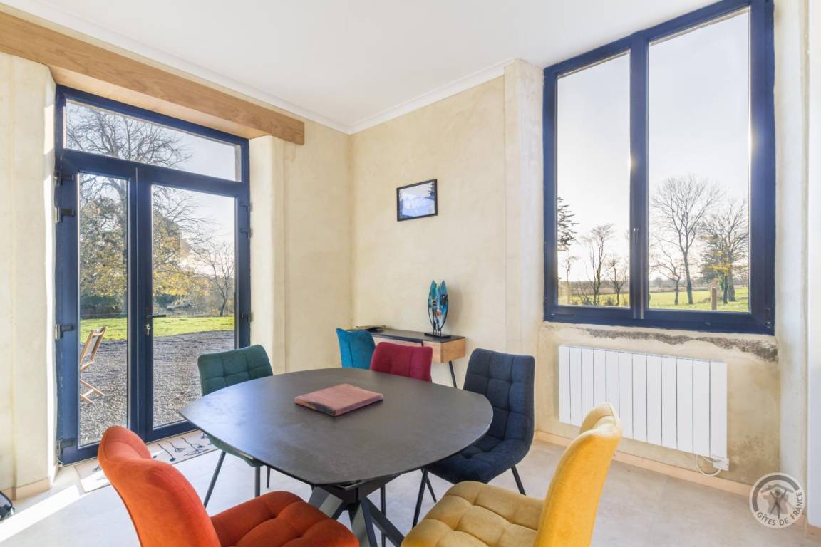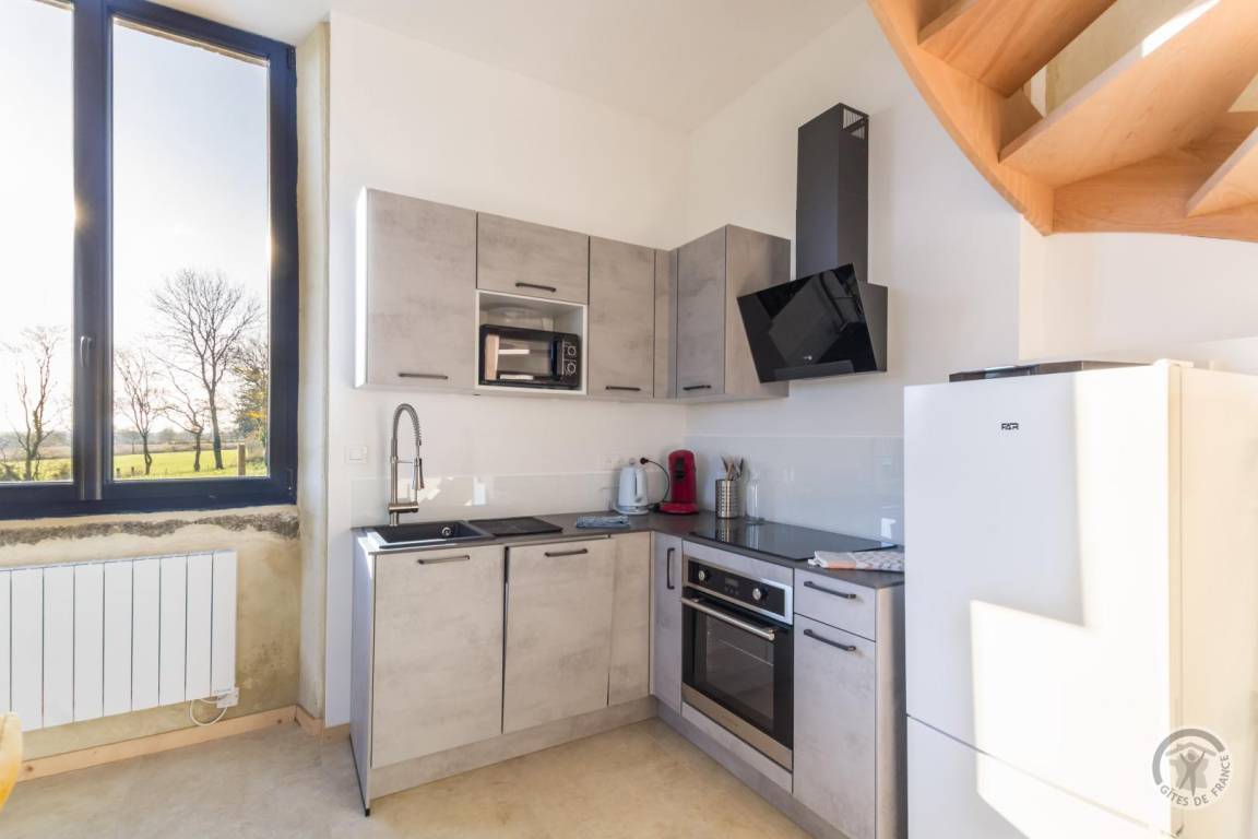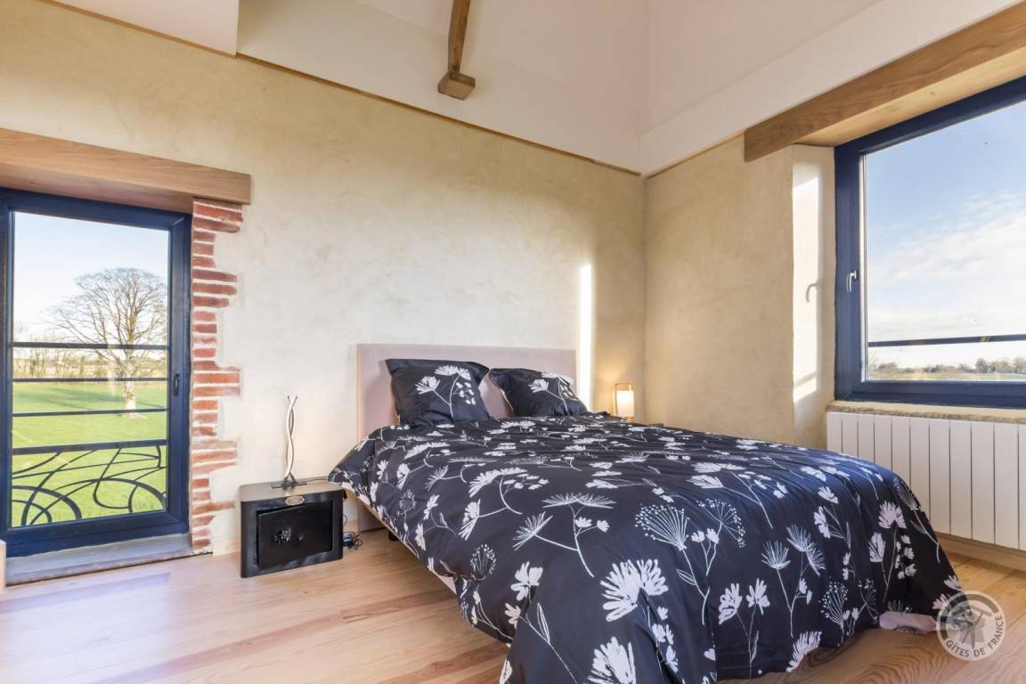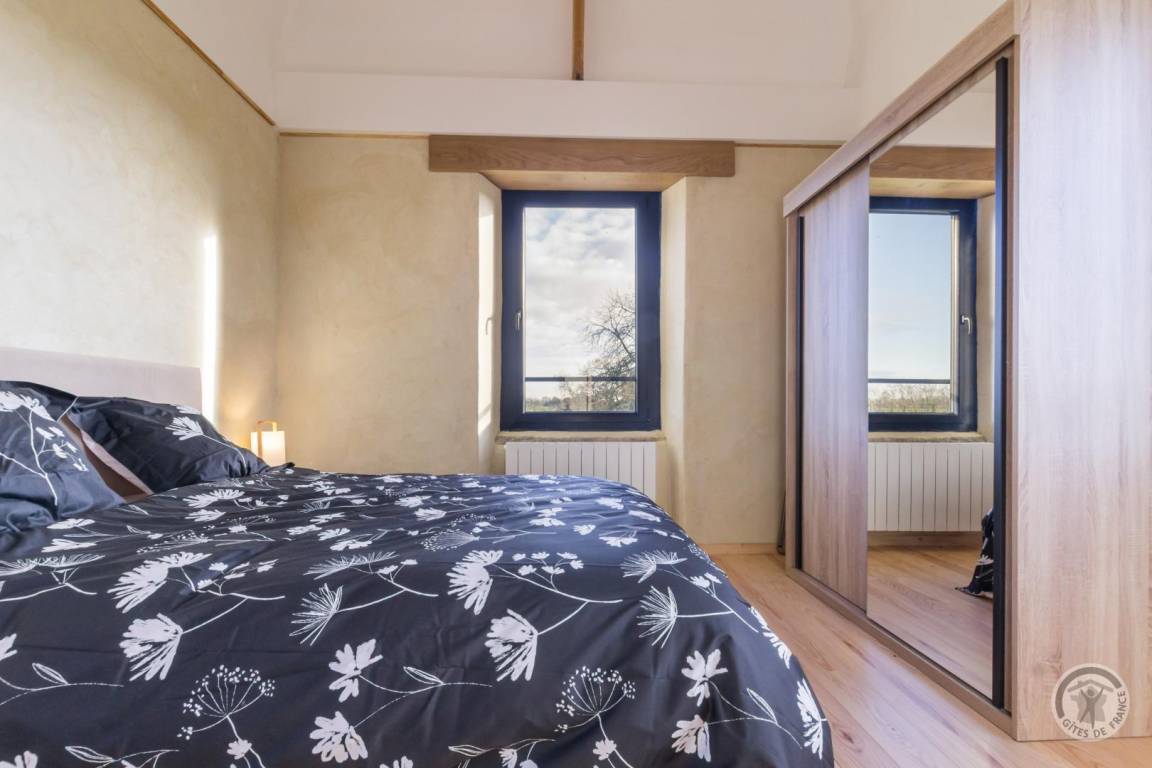 Die lange Auffahrt zu Joris' Bauernhof führt Sie allmählich ins Herz der normannischen Landschaft. Einst führte diese Auffahrt zum Château de Vesly, das 1944 bis auf einen Turm in den Bombenangriffen fast vollständig zerstört wurde. An diesem ungewöhnlichen Ort träumte der junge Besitzer von einem Ferienhaus und schuf auf diesen Ruinen nach jahrelanger Arbeit ein gemütliches, vierstöckiges Domizil. Die großen Fenster bieten von jeder Etage einen traumhaften Panoramablick in die Natur. Die geräumige Balkonterrasse ist eine wahre Oase der Ruhe, wo man in aller Ruhe Rehe, Füchse oder Vögel am Teich oder in den Hecken beobachten kann. Der Bau dieses naturnahen Wohnraums (Naturputz, Solaranlage etc.) ist daher von Respekt vor der Umwelt geprägt. Diese Rückbesinnung auf das Wesentliche teilt Joris gerne mit anderen und hat sie in dieses Projekt einfließen lassen.