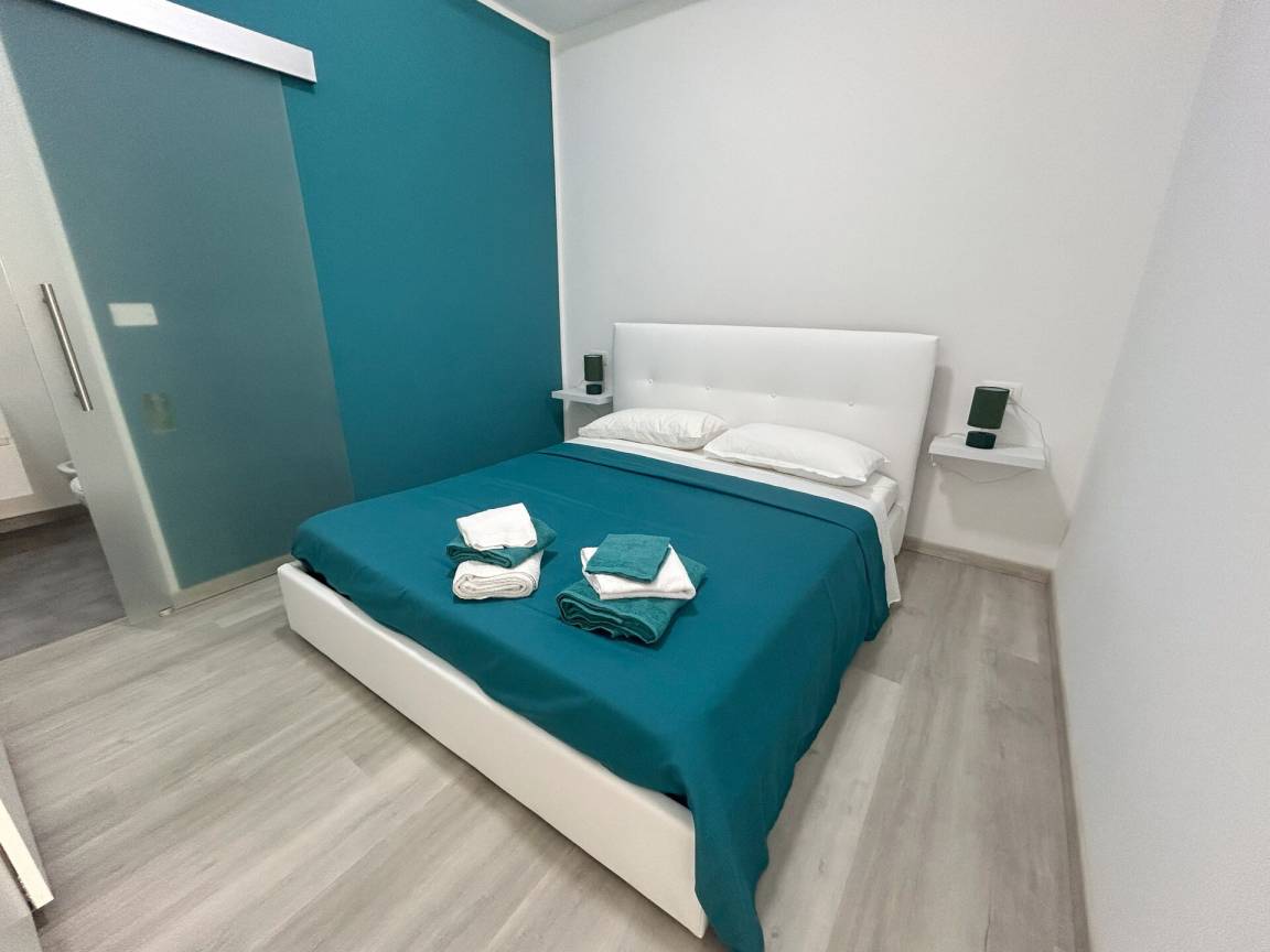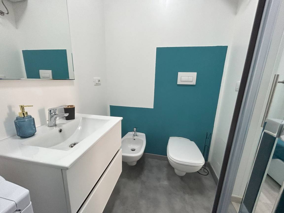 Schlafzimmer mit Bad: Doppelbett, WiFi Internet, Waschbecken, WC, Bidet, Dusche, Waschmaschine.