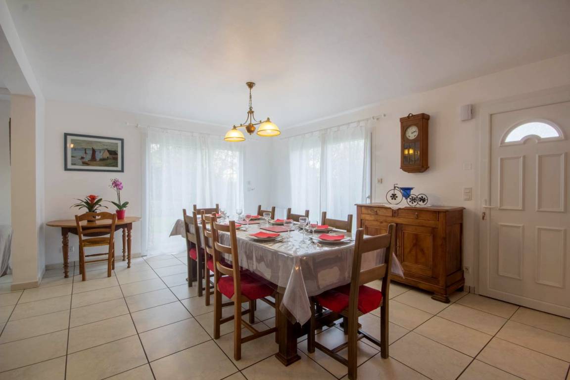 „Bon accueil des propriétaires, étant à côté mais très discrets. Maison très bien entretenue et proche de Saint Cado, site remarquable du Morbihan. Terrain bien clos pour notre petite chienne.“
