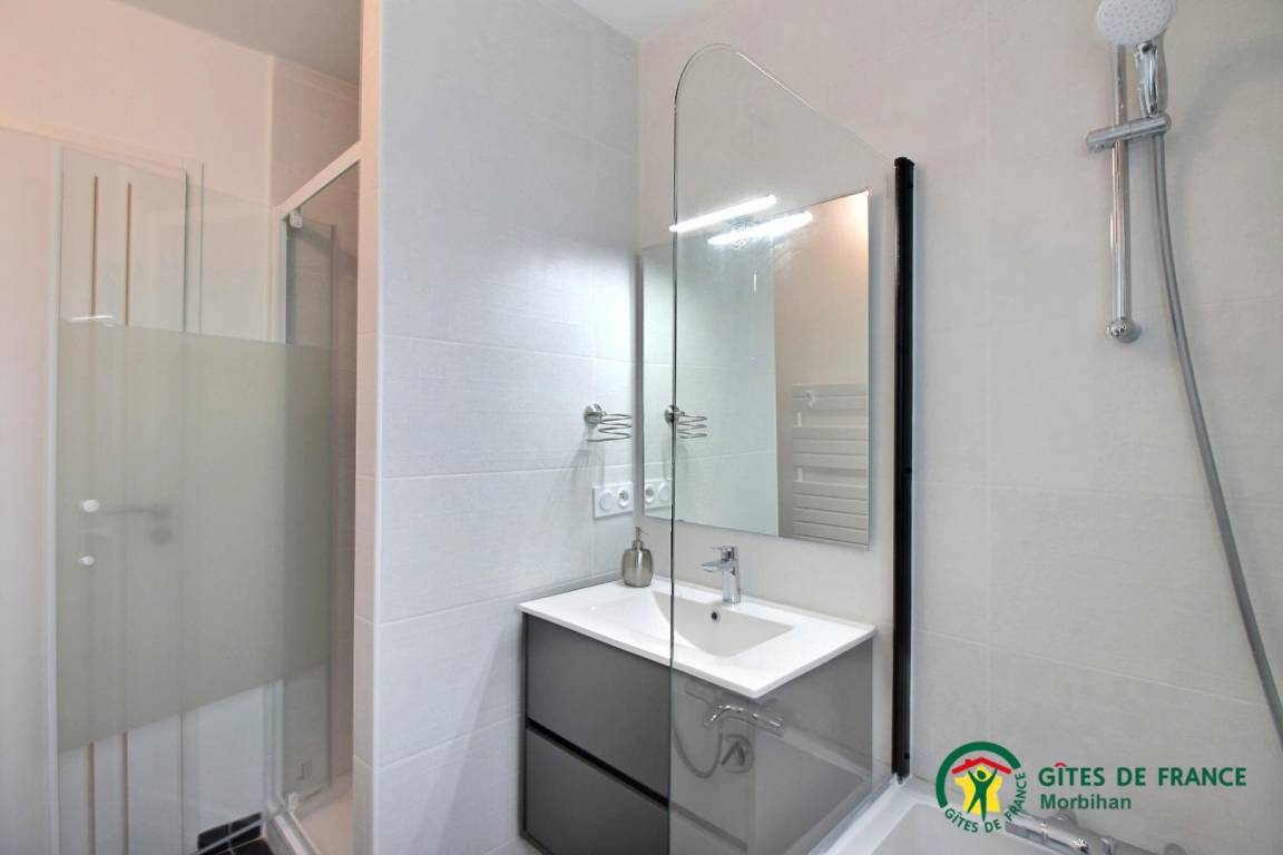 „Nous avons passé deux semaines dans ce gîte, très agréable, lumineux et très bien conçu. L'endroit est calme, à proximité de l'Ile Saint-Cado. Un seul bémol (pas dû au logement), compte tenu d'une météo assez changeante, bien qu'ayant eu très très peu de pluie, mais du vent, et de la fraîcheur en deuxième semaine, nous n'avons pas pu profiter de la terrasse. Les propriétaires sont très à l'écoute, discrets, et surtout très gentils. Je recommande vivement ce gîte à tous ceux qui voudraient passer un bon séjour dans cette partie du Morbihan.“