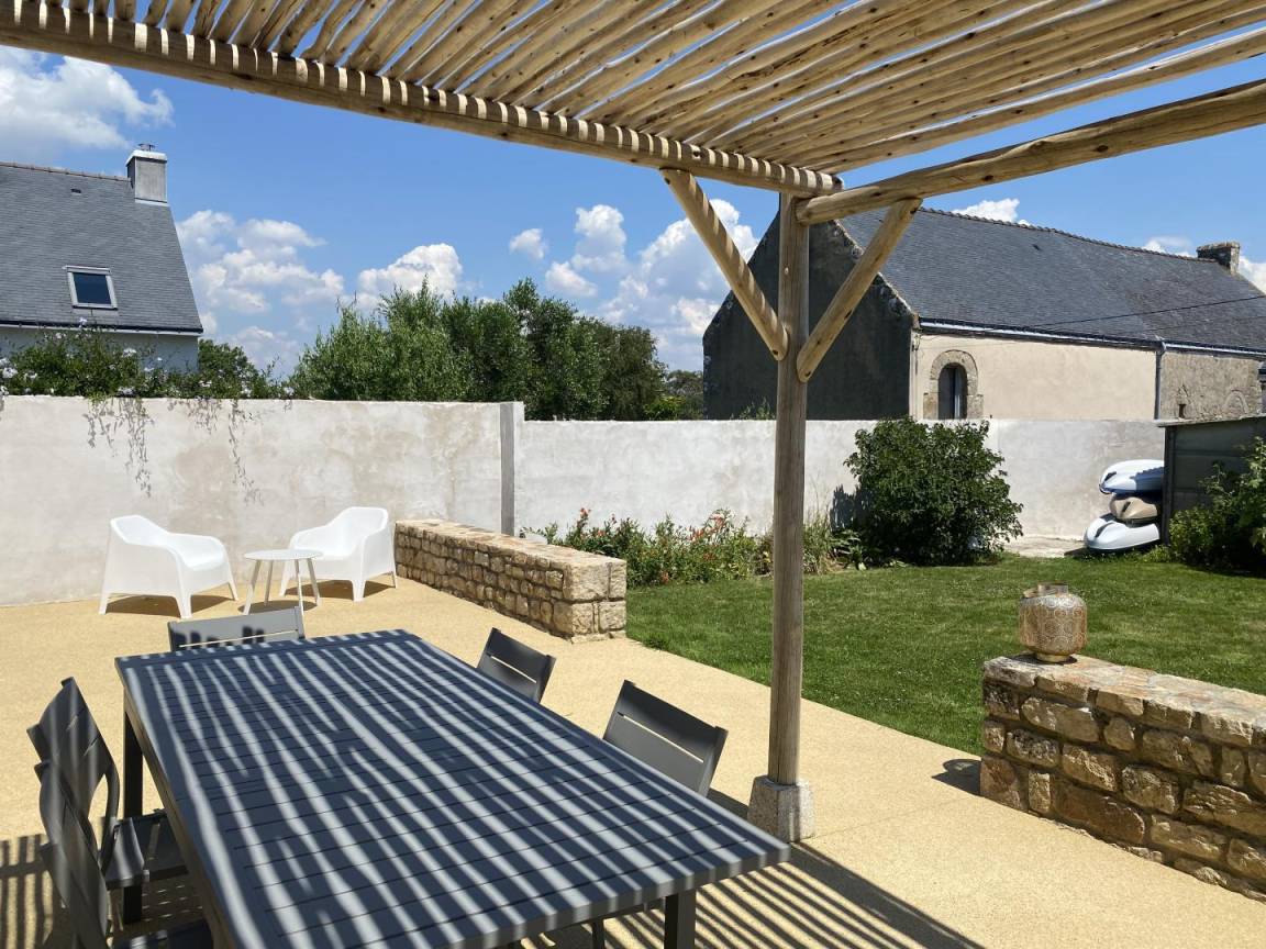 Der Garten sowie die beiden Terrassen laden Sie ein, die großartige bretonische Luft in vollen Zügen zu genießen und bieten einen idealen Rahmen für gemütliche Mittag- oder Abendessen im Freien.