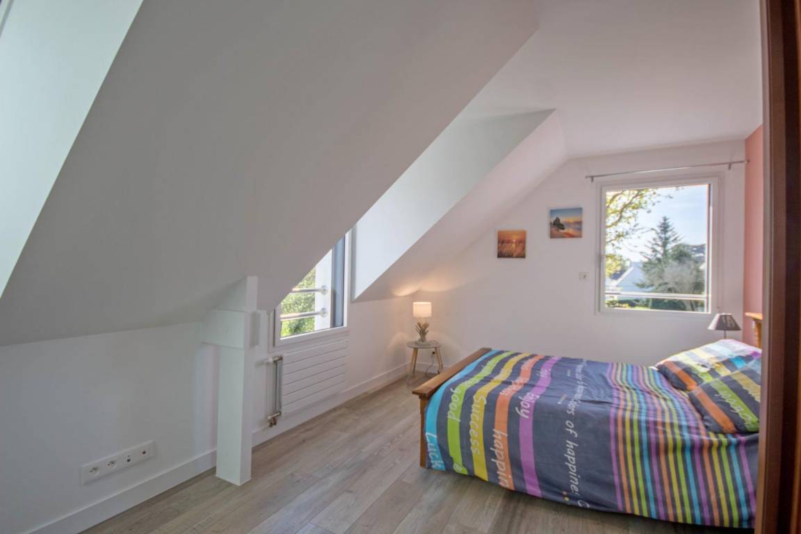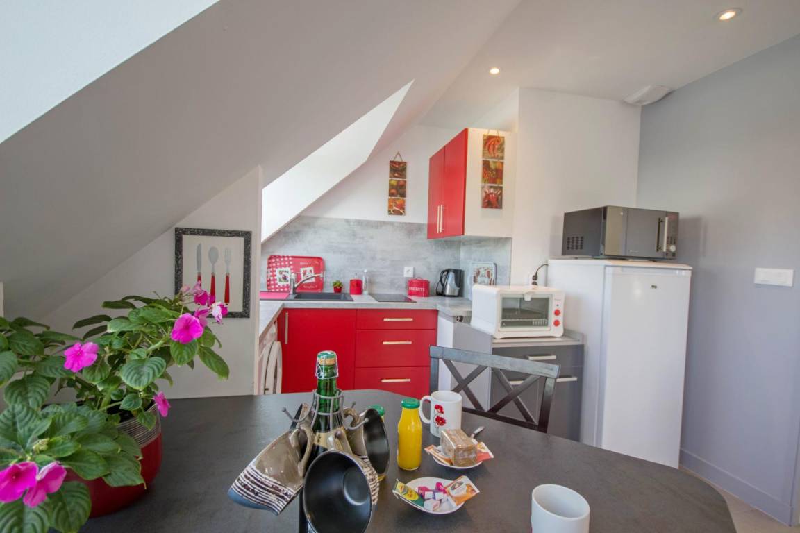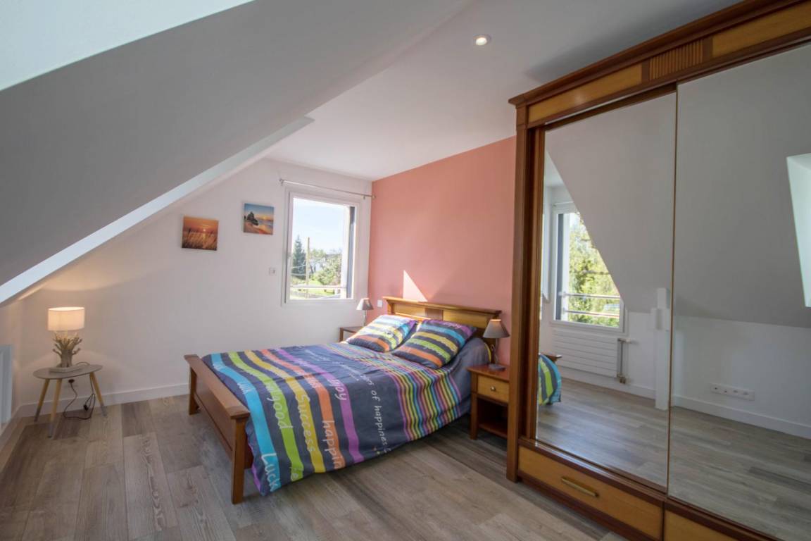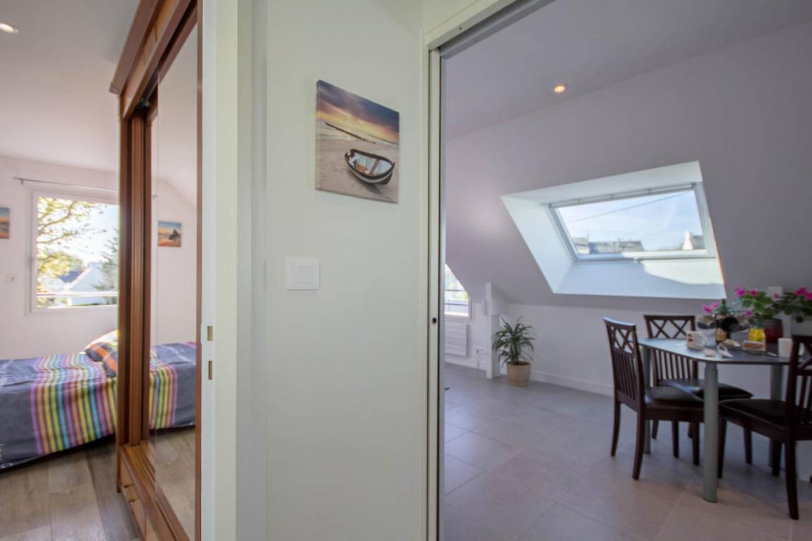 Verbringen Sie einen wunderschönen Urlaub in Belz am Meeresarm Ria d'Etel, eine der schönsten Landschaften der ganzen Region mit der Insel Saint Cado. Atemberaubende Landschaften einer seltenen Schönheit liegen vor Ihnen: Sumpfgebiete, Sandbänke, kleinere und größere Buchten und Dünen. Die Unterkunft liegt im ersten Stock des Wohnhauses der Vermieter und besitzt einen separaten Eingang. Großer und heller Wohnbereich mit einer offenen Küche und Esszimmer/Wohnzimmer. Schlafzimmer für 2 Personen mit 1 Bett 140x190. Praktisch gestaltetes Bad mit Dusche und ein WC. Hier ist alles inklusive. Privatparkplatz auf dem Grundstück.