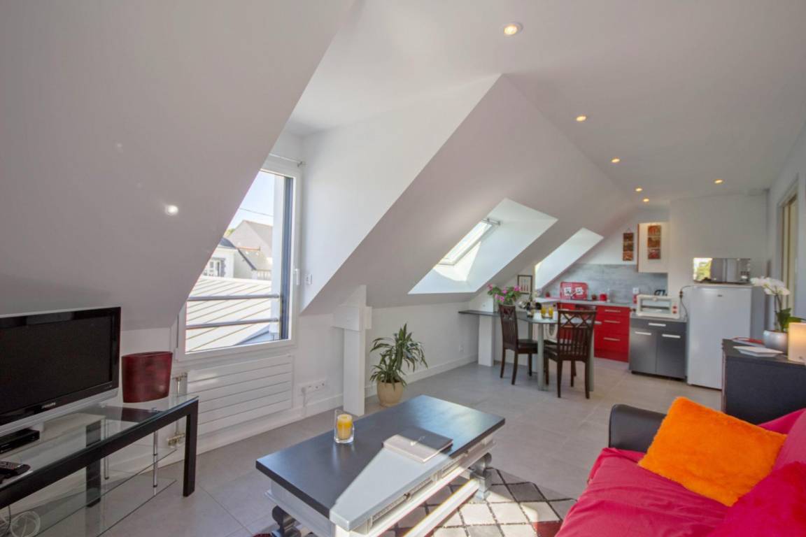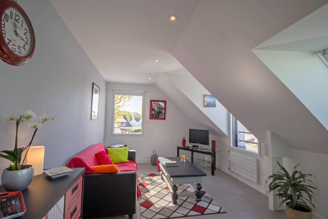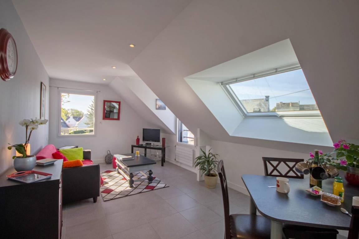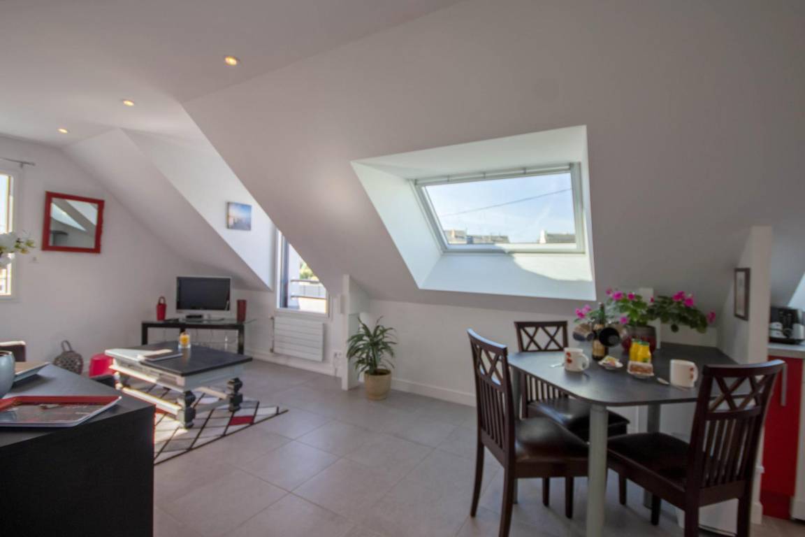 Verbringen Sie einen wunderschönen Urlaub in Belz am Meeresarm Ria d'Etel, eine der schönsten Landschaften der ganzen Region mit der Insel Saint Cado. Atemberaubende Landschaften einer seltenen Schönheit liegen vor Ihnen: Sumpfgebiete, Sandbänke, kleinere und größere Buchten und Dünen. Die Unterkunft liegt im ersten Stock des Wohnhauses der Vermieter und besitzt einen separaten Eingang. Großer und heller Wohnbereich mit einer offenen Küche und Esszimmer/Wohnzimmer. Schlafzimmer für 2 Personen mit 1 Bett 140x190. Praktisch gestaltetes Bad mit Dusche und ein WC. Hier ist alles inklusive. Privatparkplatz auf dem Grundstück.