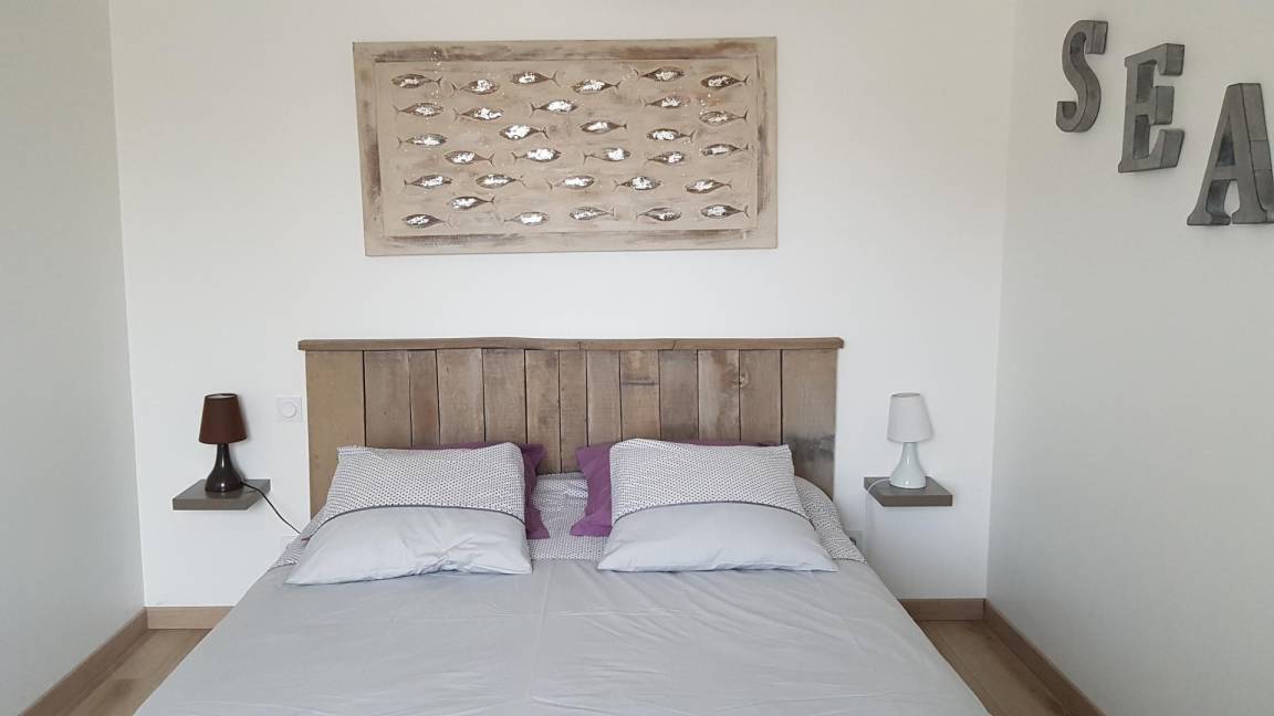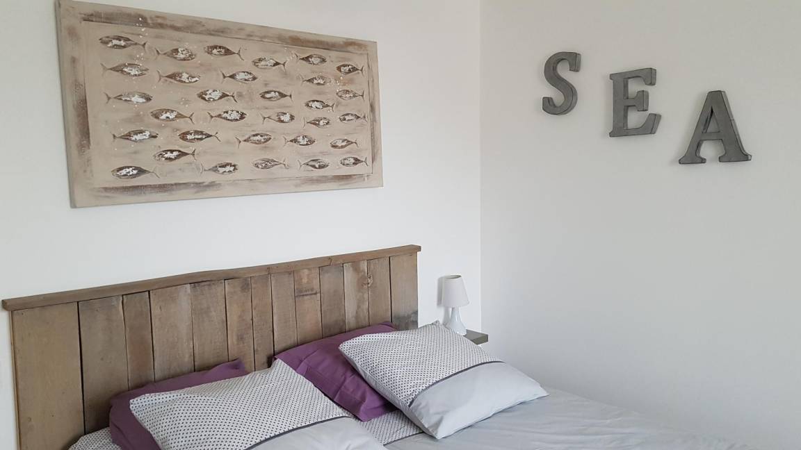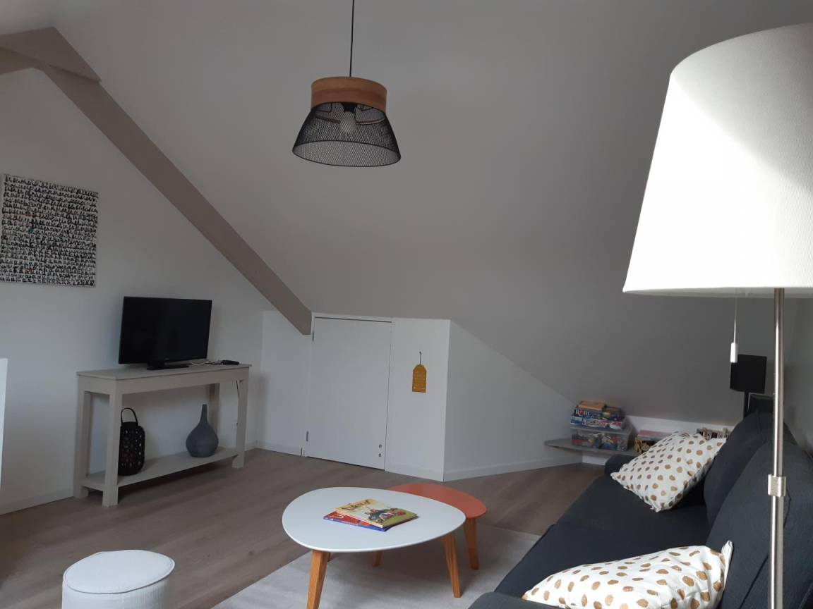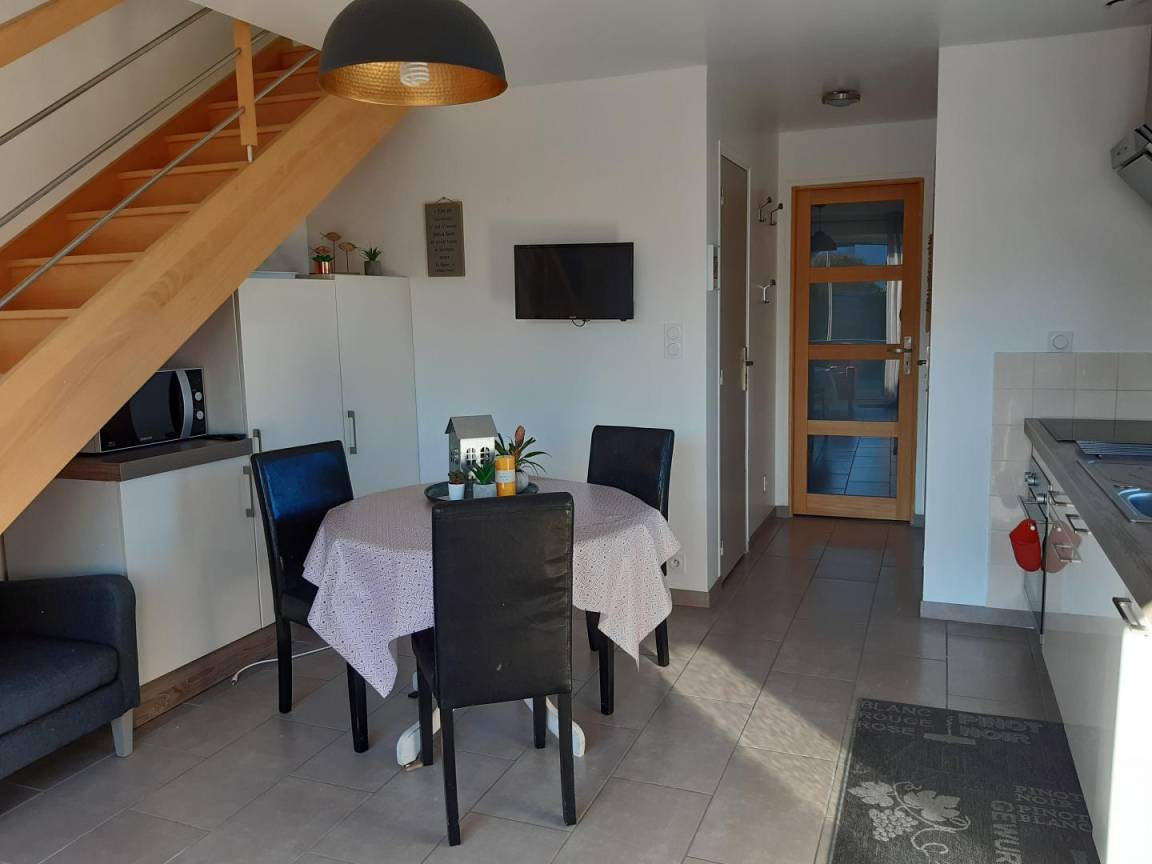 „Logement bien situé au calme entre mer et campagne. Très agréable avec sa terrasse privée et son étage où est aménagé un coin salon meuble avec goût“