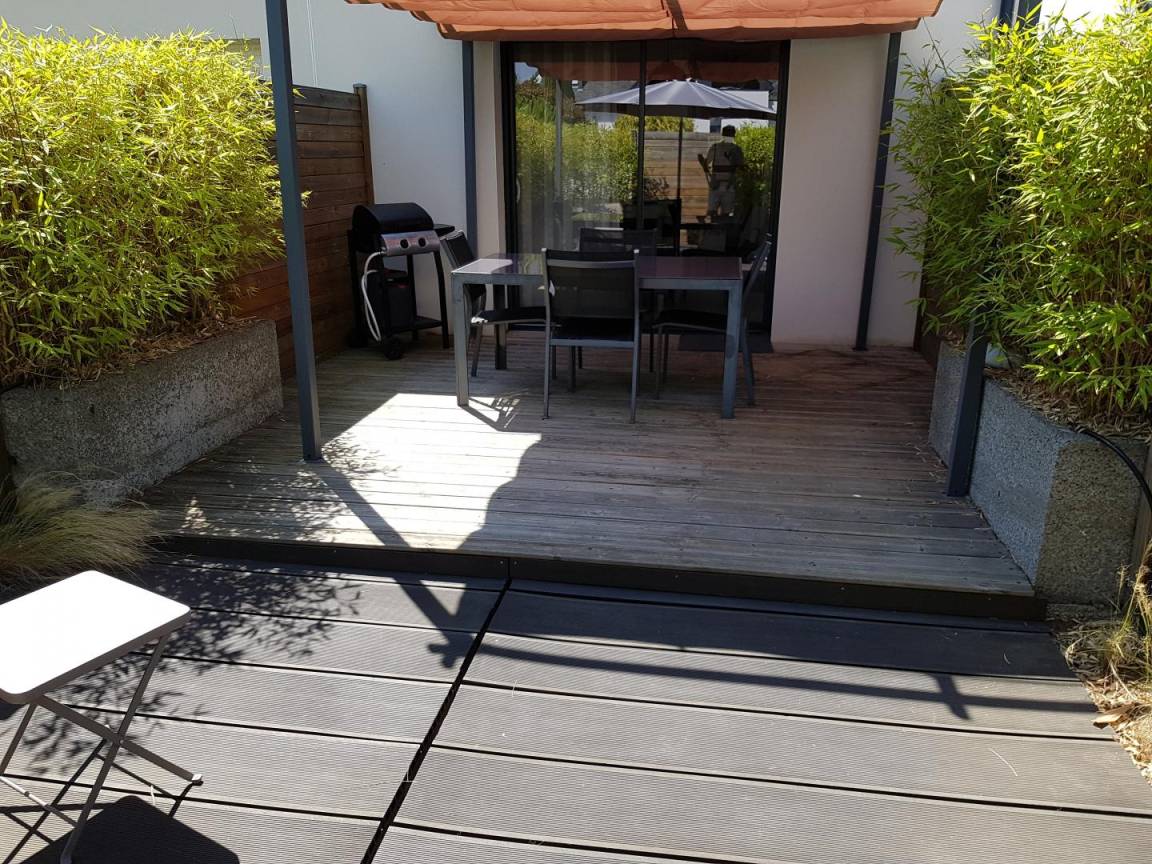 Entdecken Sie die Meeresbucht am Anfang des Meeresarms Ria d'Etel mit Landschaften einer seltenen Schönheit. Abwechslungsreiche Landstriche für Naturliebhaber und Wanderfreunde: Sümpfe, Sandbänke, natürliche Strände, landestypische Häfen, Fischerhäuschen... Besuchen Sie unbedingt die Insel St-Cado, ein traditionelles Dorf auf einer Insel. Baden, Angeln, Dolce Farniente kommen nicht zu kurz, Strände 6km. Auray 20 Min.: Künstlerateliers, der Hafen St Goustan. Ferienhaus mit modernem Dekor. Im EG: Esszimmer/Wohnzimmer/Küche mit Zugang zu einer Holzterrasse, WC, Bad mit Dusche, 1 Zi. (1 Bett 160). 1. Stock: 1 Zi. auf Mezzanin (2 Betten 90), und Fernsehecke.