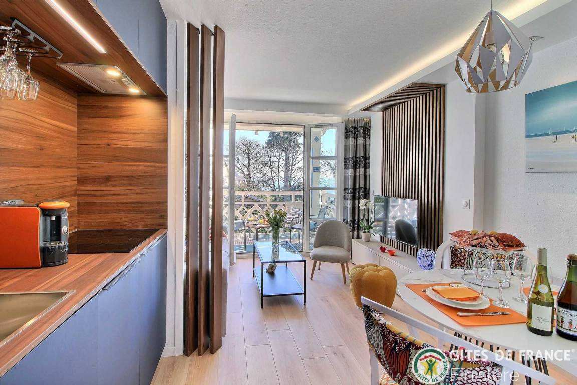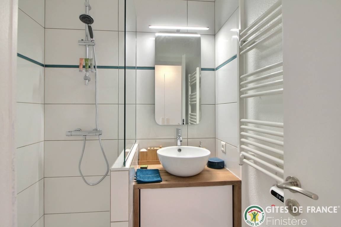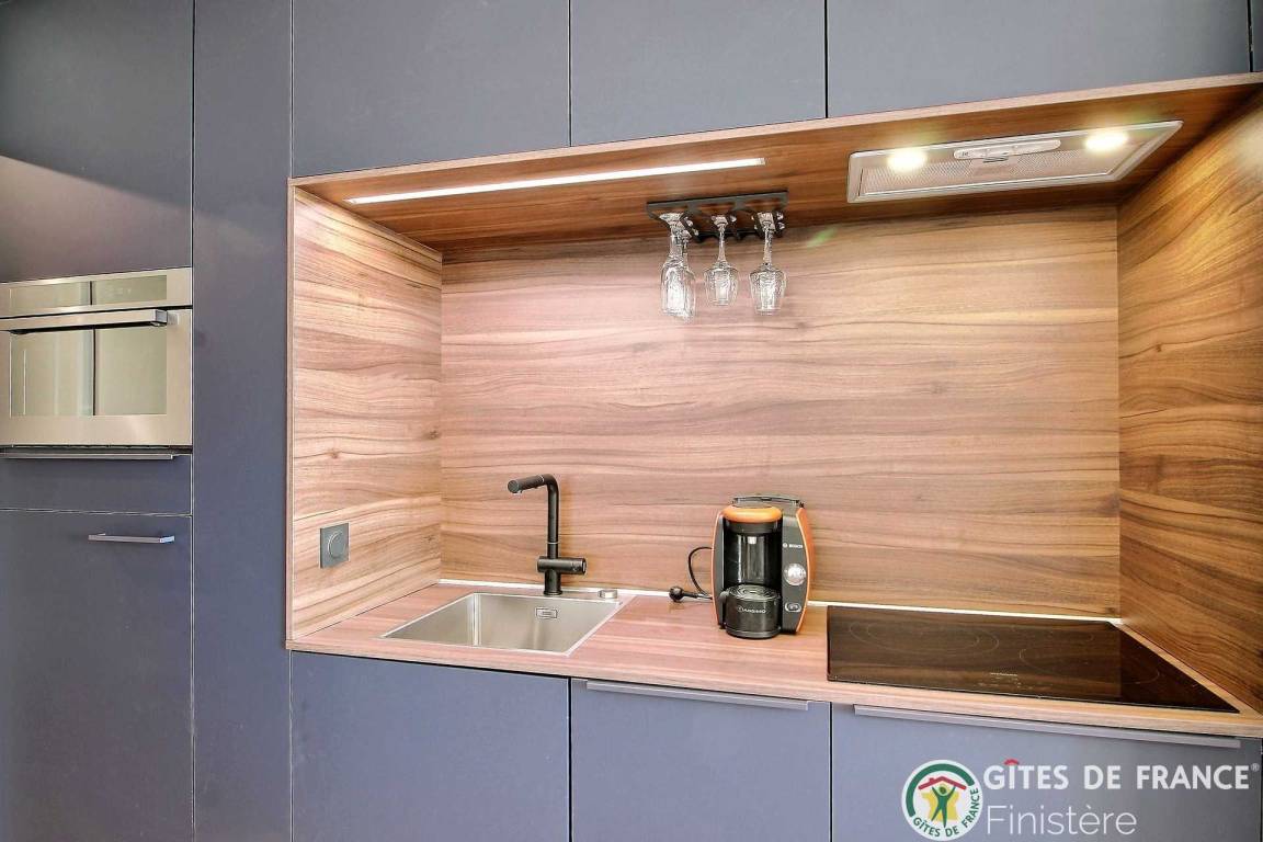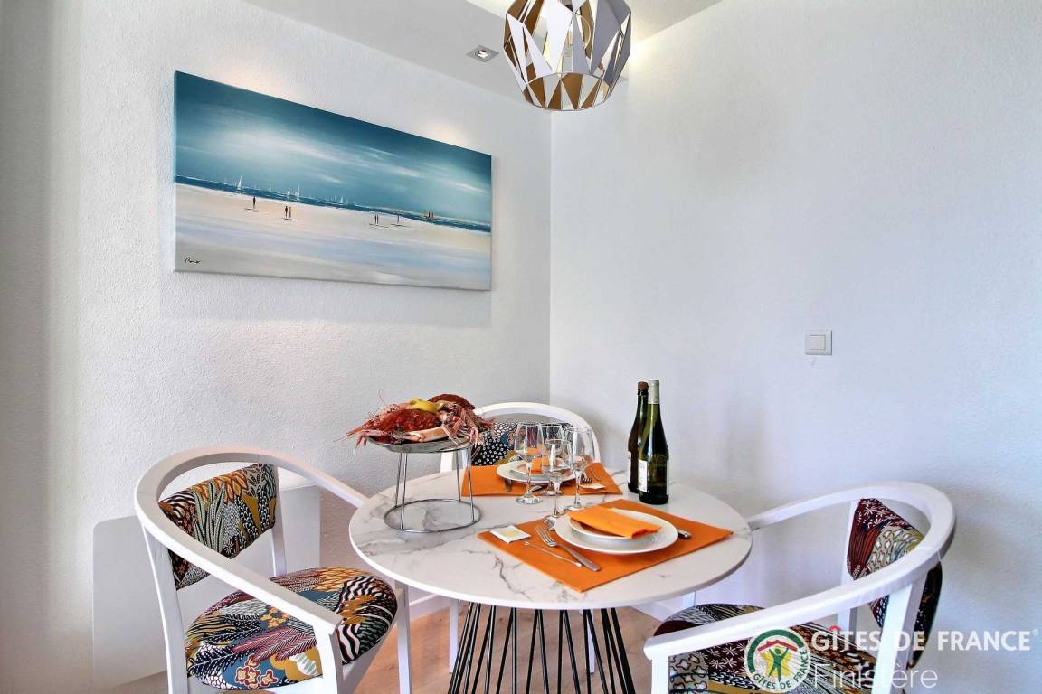 „Modern and well appointed but fairly small accommodation well located near to beaches, lovely walks and restaurants in beautiful Benodet. Charming and helpful proprietor. You need to be quite nimble on your feet to negotiate some of the apartment, especially the bedroom although the bed is very comfortable, and also the stairs to the first floor if you have any mobility issues. All of that said, we had a very good week at Echappee Belle and were sad leave Benodet. Would definitely recommend for an able-bodied couple.“