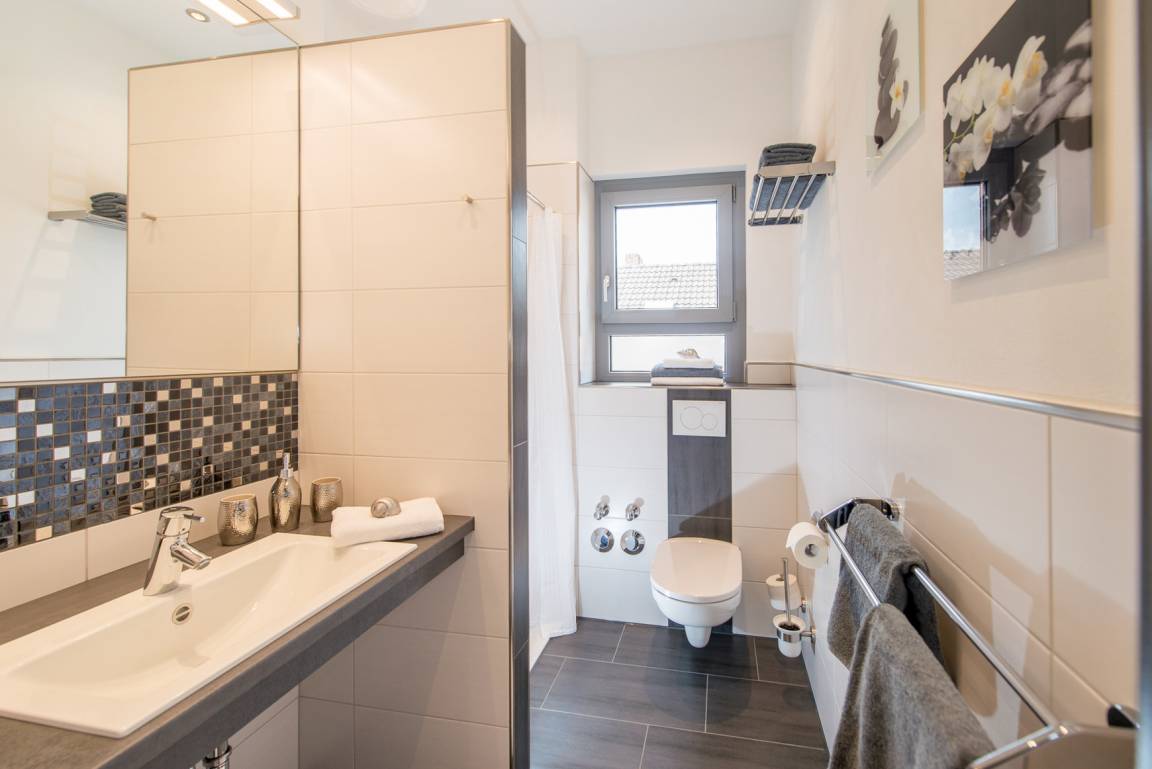 Premium-Bad mit Dusche, Waschbecken und WC & Premium-Ausstattung