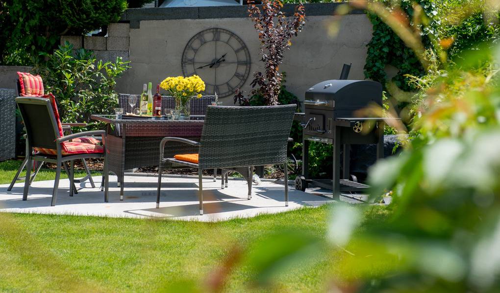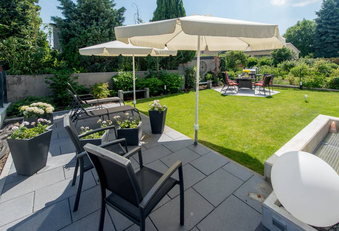 Extras: Nutzung der Sitz- und Liegebereiche im Wohlfühl-Garten, Kinder willkommen (kein Fußball), Grillmöglichkeit (Elektrische Grillplatte) für die Terrasse.