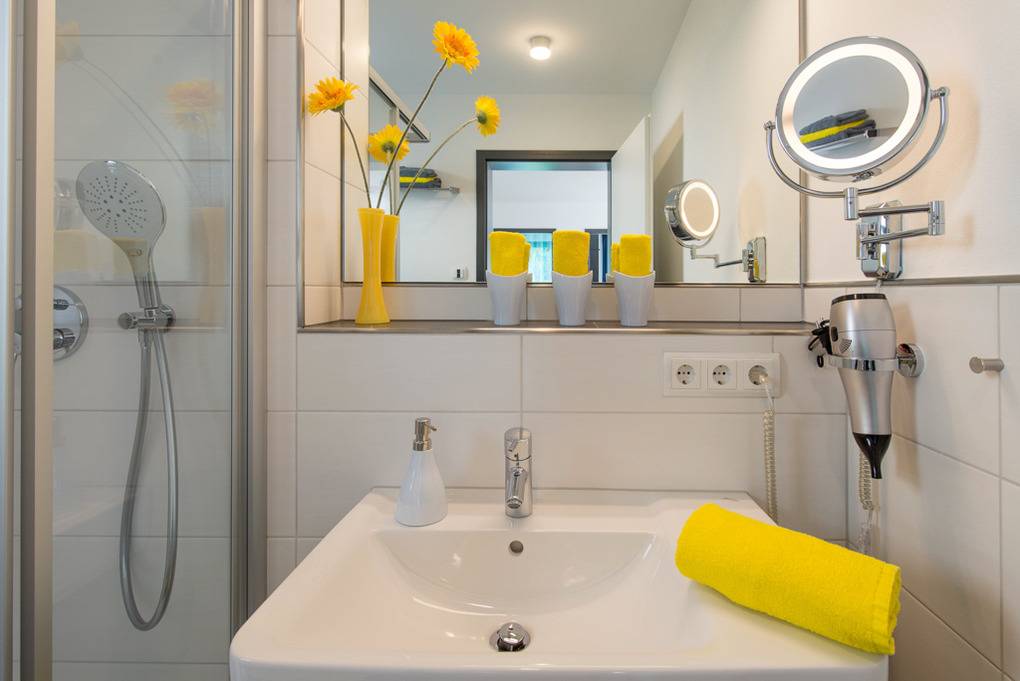 bodentiefe Regendusche, Haartrockner, Handtücher, Toilettenpapier