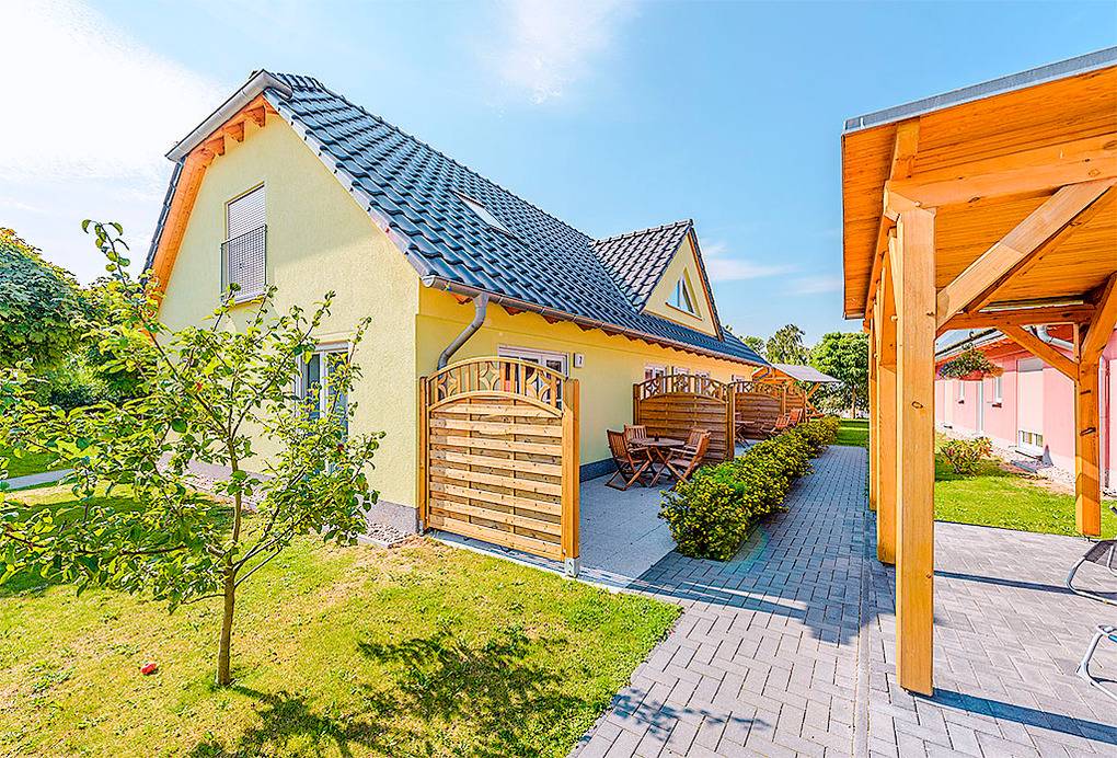 Haus: Kleine, familiäre Ferienanlage mit 12 Reihenhäusern am Achterwasser (100 m). Moderne, freundliche Einrichtung. Internetzugang über W-Lan vorhanden (Gebühr). Nichtraucherhäuser. E-Heizung. Fahrradschuppen. Jede Haushälfte mit schöner Terrasse mit Sitzmöbeln, Grill. Teilweise herrlicher Wasserblick von der Terrasse aus (nur bei D 15.5/D15.5A/D 15.6). 1 Pkw-Stellplatz pro Haushälfte.