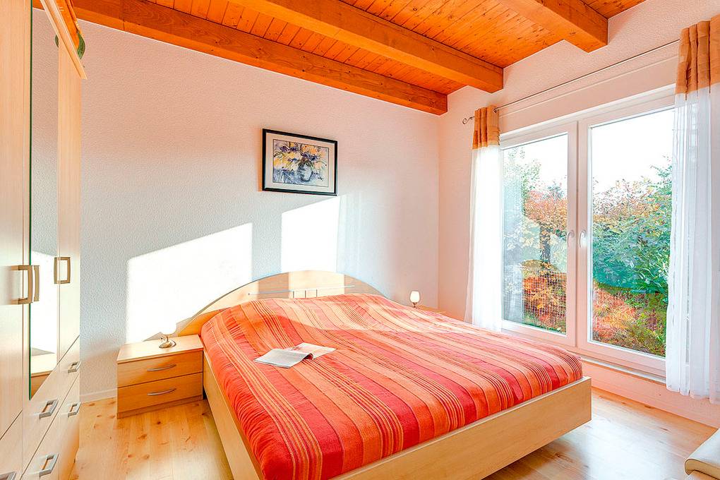 D 15.5 Ferienhaus 2-4 Pers.: 2 1/2-Zimmerhaushälfte, 72 qm Wohnfläche über 2 Etagen. Parterre: Heller Wohn-/Essraum mit Sitzecke, Esstisch, moderner Küchenzeile (Backofen, Mikrowelle). Doppelzimmer. Bad/WC. Treppe in die 1. Etage (leichte Dachschrägen): großzügiger, offener Wohn-/Schlafbereich mit Sitzecke, Sat-TV, 2 Einzelbetten (D 15.5/15.5B mit franz. Bett). Terrasse mit Sitzmöbeln, Grill, Wasserblick (D 15.5 und D 15.5A).