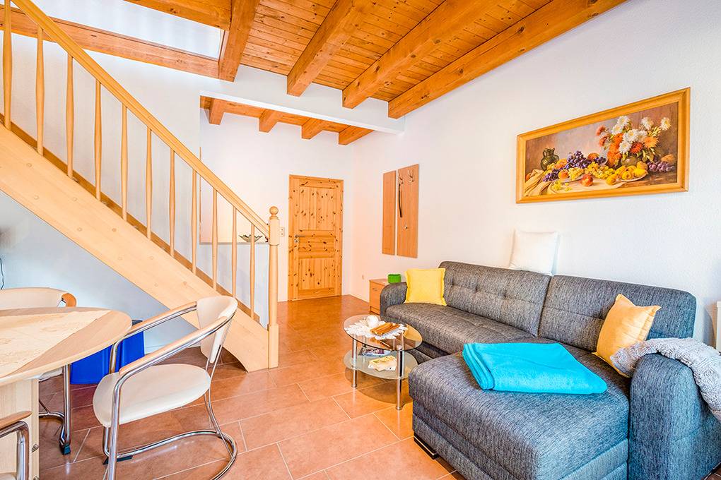 Nebenkosten Strom, Wasser nach Verbrauch. Endreinigung 100 € (wird bei Buchung erhoben). Bettwäsche leihbar 12 €/Pers (Bestellung). Handtücher leihbar 8 €/Pers (Bestellung). Zusätzliche Leistungen Internet auf Wunsch 10 €/Woche. 1 Pkw-Stellplatz im Preis inklusive. Kaution 140 €. Kinder Babybett zusätzlich zur maximalen Personenzahl 2,50 €/Tag (Bestellung). Hochstuhl 2,50 €/Tag (Bestellung). Haustier nicht erlaubt.Räume & Aufteilung