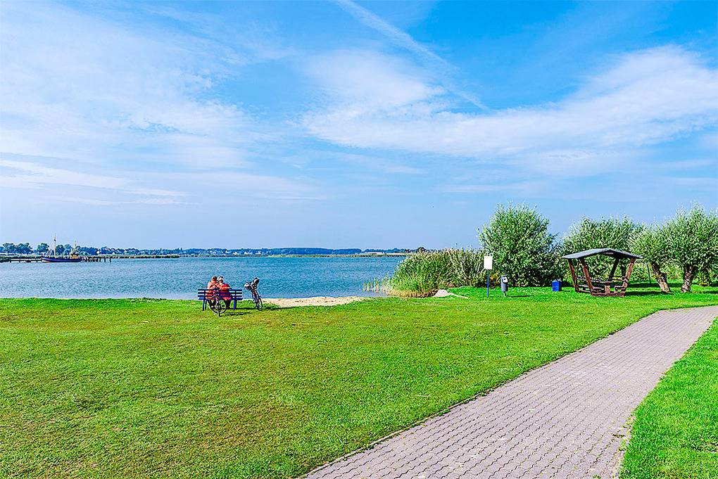 Ort: Neppermin auf Usedom. Idyllisches, kleines Dorf unmittelbar am Achterwasser gelegen. Badestelle mit Liegewiese, Spielplatz 300 m. Beliebtes Fisch-Restaurant, Hof-Café, Boots- und Fahrradverleih je 300 m. Golfplatz Balm 2,2 km. Kaiserbad Bansin mit schönem Ostseestrand ca. 8 km.